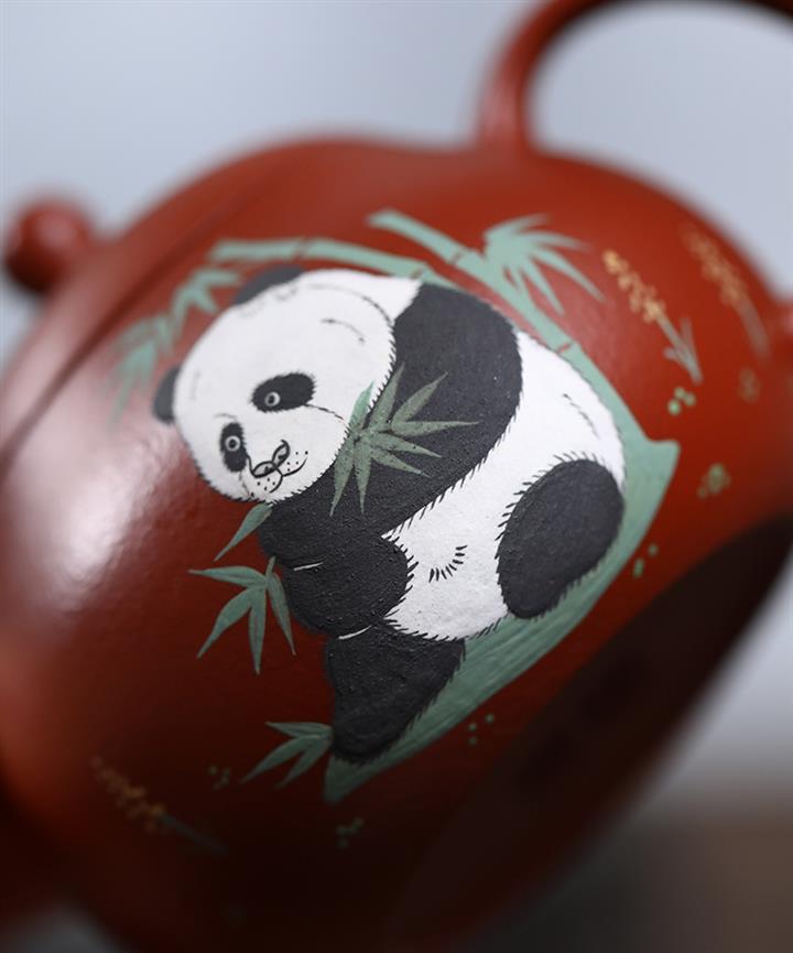 120cc原礦朱泥熊貓小西施茶壺POT8104