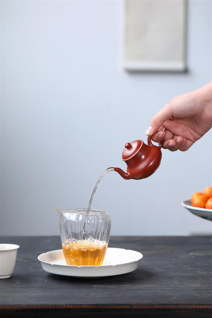 【泥料特點】砂土氣重,似淳實農民,日久使用,漸露鋒芒,養成變化,溫潤莊重。紫砂是壹種雙重氣孔結構的多孔性材質,氣孔微細,密度高。用紫砂壺沏茶,不失原味,且香不渙散,得茶之真香真味。紫砂使用越久,壺身色澤越發光亮照人,氣韻溫雅。紫砂壺長久使用器身會因撫摸擦拭,變得越發溫潤光澤。