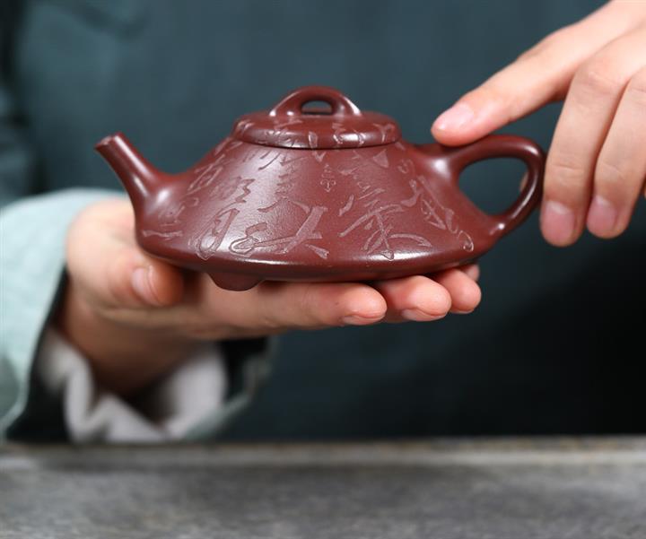 【泥料特點】砂土氣重,似淳實農民,日久使用,漸露鋒芒,養成變化,溫潤莊重。紫砂是壹種雙重氣孔結構的多孔性材質,氣孔微細,密度高。用紫砂壺沏茶,不失原味,且香不渙散,得茶之真香真味。紫砂使用越久,壺身色澤越發光亮照人,氣韻溫雅。紫砂壺長久使用器身會因撫摸擦拭,變得越發溫潤光澤。
