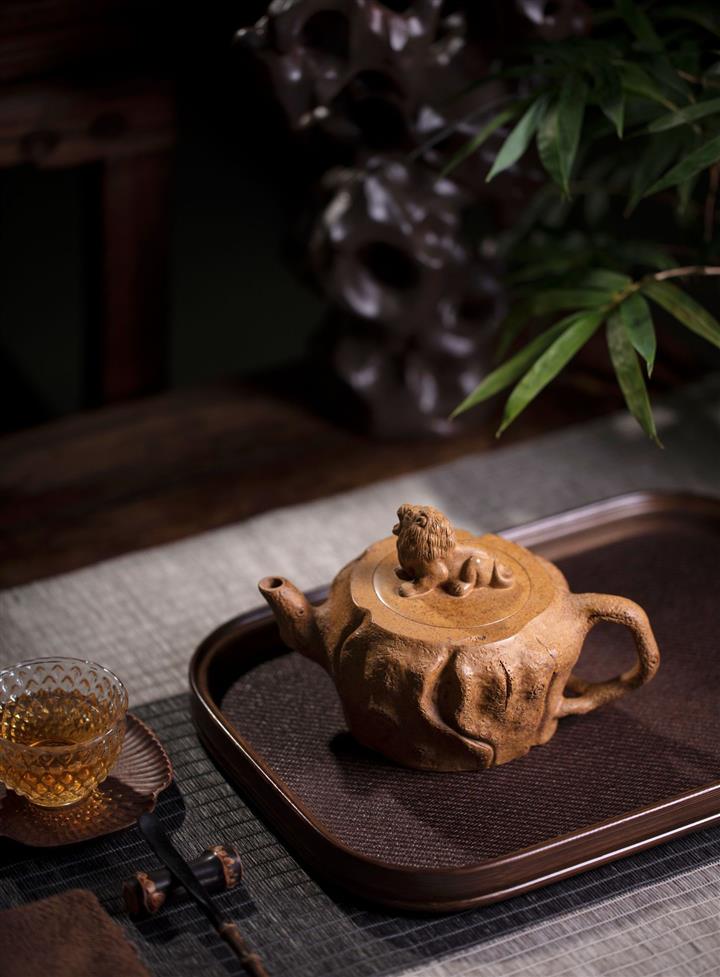 【泥料特點】砂土氣重,似淳實農民,日久使用,漸露鋒芒,養成變化,溫潤莊重。紫砂是壹種雙重氣孔結構的多孔性材質,氣孔微細,密度高。用紫砂壺沏茶,不失原味,且香不渙散,得茶之真香真味。紫砂使用越久,壺身色澤越發光亮照人,氣韻溫雅。紫砂壺長久使用器身會因撫摸擦拭,變得越發溫潤光澤。