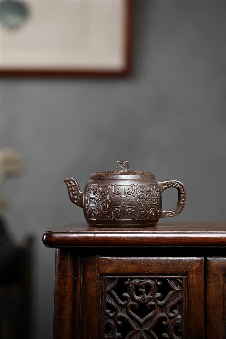 180cc原礦綠泥容天刻繪茶壺POT8353