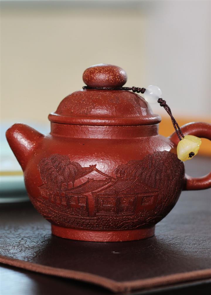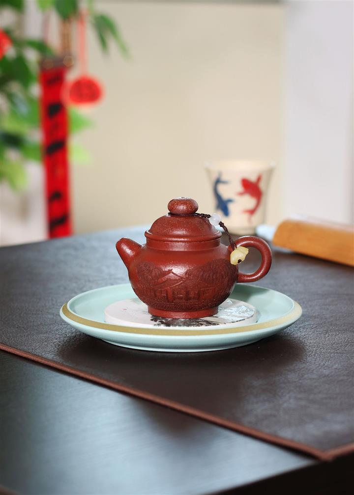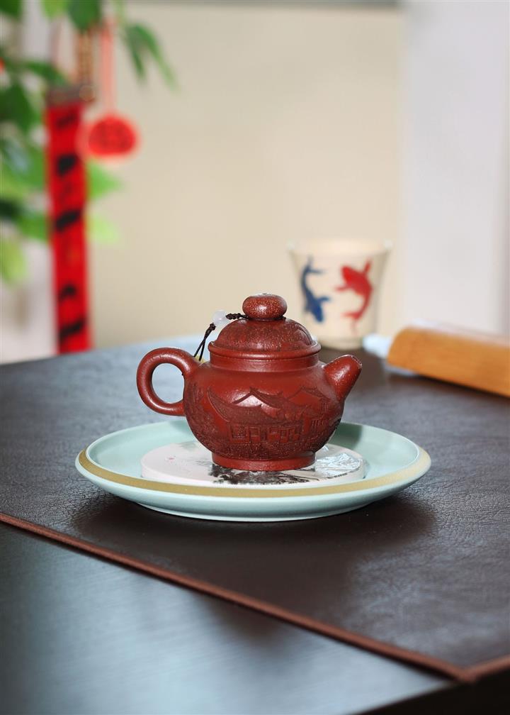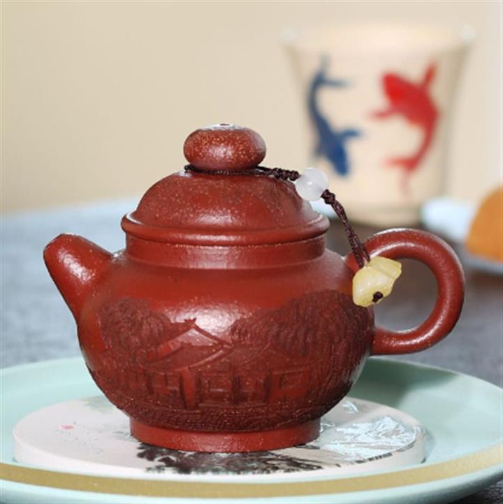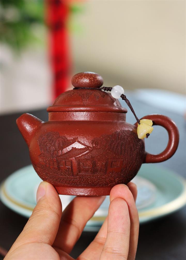 原礦朱泥全手工筋紋如意茶壺POT6667