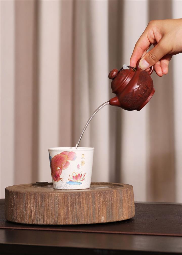 原礦老紫泥手工魚趣蓮蓬茶壺POT6671