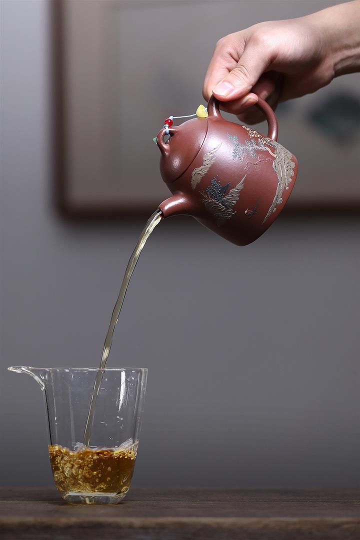 【泥料特點】砂土氣重,似淳實農民,日久使用,漸露鋒芒,養成變化,溫潤莊重。紫砂是壹種雙重氣孔結構的多孔性材質,氣孔微細,密度高。用紫砂壺沏茶,不失原味,且香不渙散,得茶之真香真味。紫砂使用越久,壺身色澤越發光亮照人,氣韻溫雅。紫砂壺長久使用器身會因撫摸擦拭,變得越發溫潤光澤。