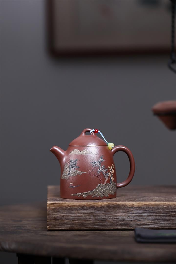 【作品介紹】此款壺形線條流暢,壺把,壺嘴,壺身壹氣呵成栩栩如生,是收藏把玩的好壺,泥料色澤古樸典雅,日久使用,漸露鋒芒,養成變化快,溫潤莊重,用其泡茶,使用的年代久,壺身就溫潤,泡出來的茶湯也就醇郁芳馨。