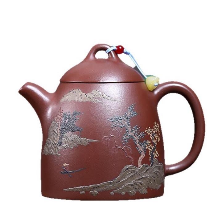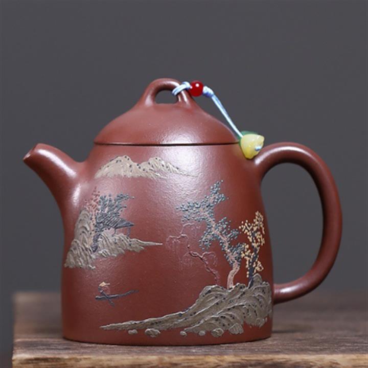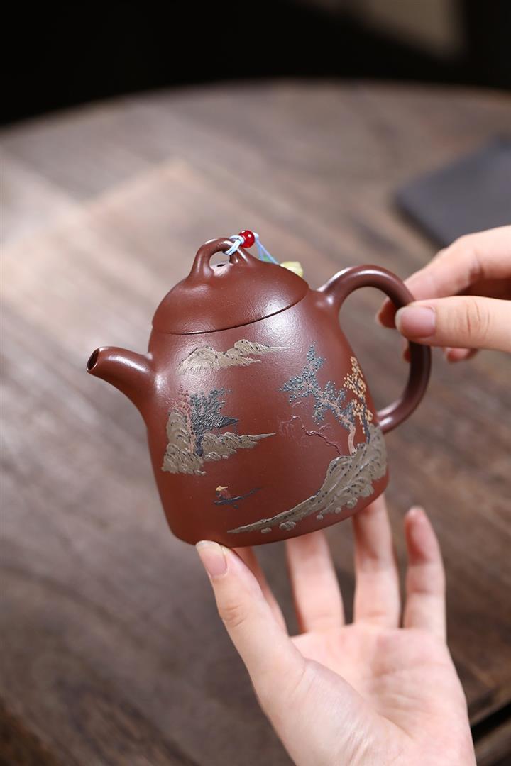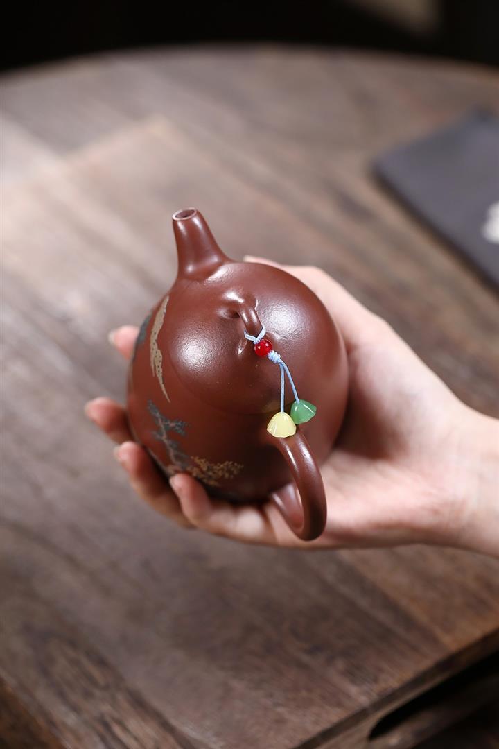 原礦紫泥刻繪石瓢紫砂壺POT4752
