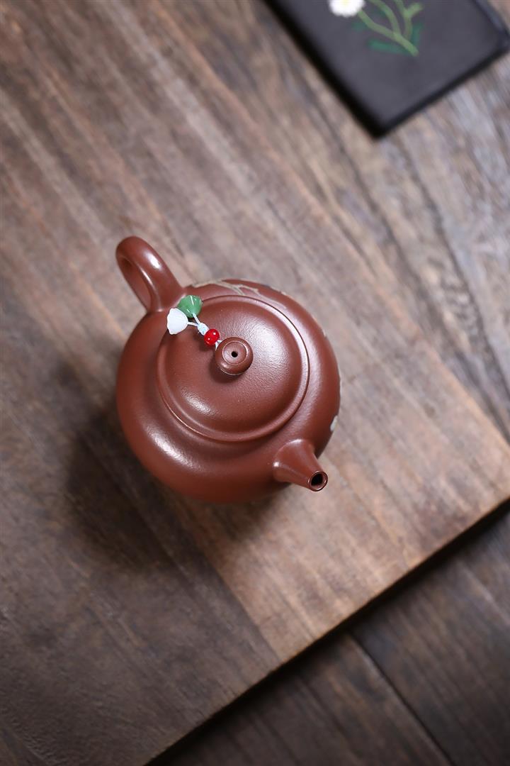 原礦紫泥刻繪石瓢紫砂壺POT4956
