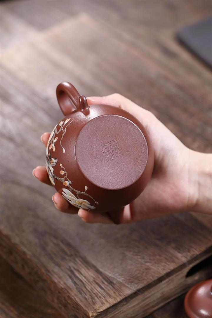 【作品介紹】此款壺形線條流暢,壺把,壺嘴,壺身壹氣呵成栩栩如生,是收藏把玩的好壺,泥料色澤古樸典雅,日久使用,漸露鋒芒,養成變化快,溫潤莊重,用其泡茶,使用的年代久,壺身就溫潤,泡出來的茶湯也就醇郁芳馨。
