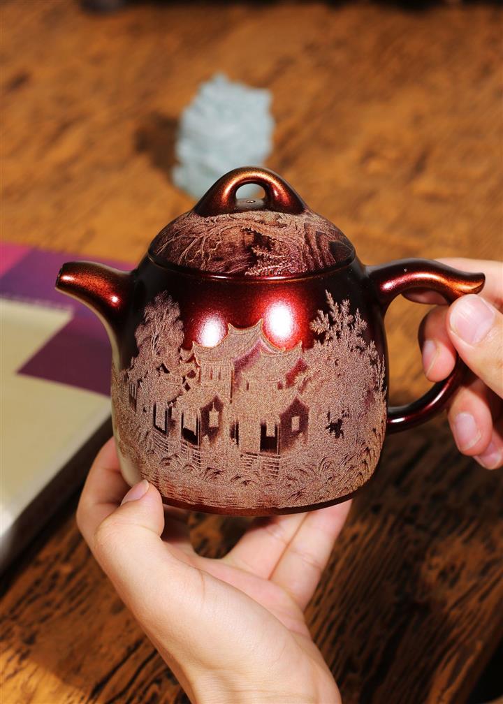 【泥料特點】砂土氣重,似淳實農民,日久使用,漸露鋒芒,養成變化,溫潤莊重。紫砂是壹種雙重氣孔結構的多孔性材質,氣孔微細,密度高。用紫砂壺沏茶,不失原味,且香不渙散,得茶之真香真味。紫砂使用越久,壺身色澤越發光亮照人,氣韻溫雅。紫砂壺長久使用器身會因撫摸擦拭,變得越發溫潤光澤。