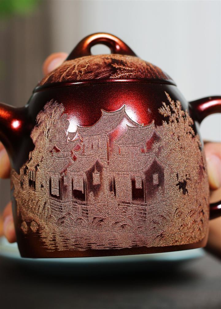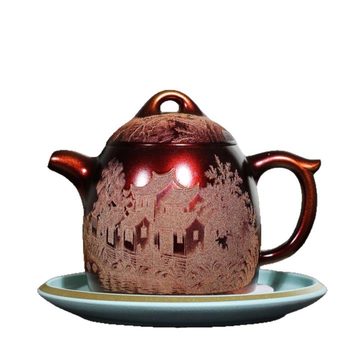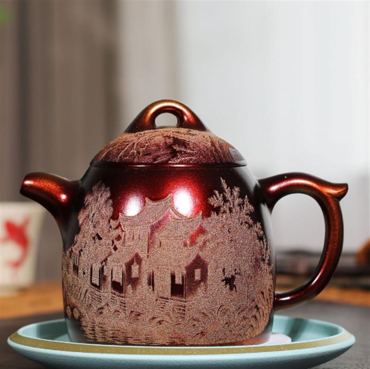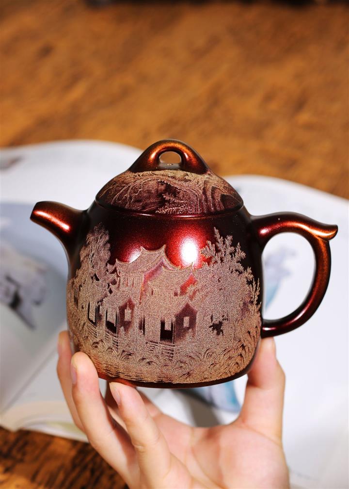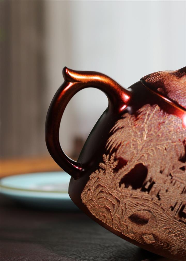 450cc原礦紫泥貝殼燒滿刻秦權茶壺POT8214
