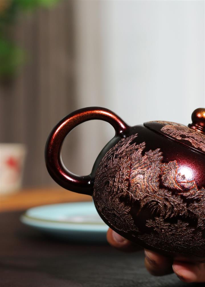 【作品介紹】此款壺形線條流暢,壺把,壺嘴,壺身壹氣呵成栩栩如生,是收藏把玩的好壺,泥料色澤古樸典雅,日久使用,漸露鋒芒,養成變化快,溫潤莊重,用其泡茶,使用的年代久,壺身就溫潤,泡出來的茶湯也就醇郁芳馨。