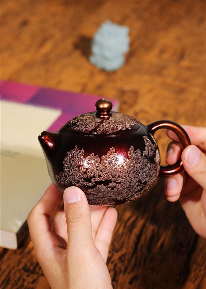 【泥料特點】砂土氣重,似淳實農民,日久使用,漸露鋒芒,養成變化,溫潤莊重。紫砂是壹種雙重氣孔結構的多孔性材質,氣孔微細,密度高。用紫砂壺沏茶,不失原味,且香不渙散,得茶之真香真味。紫砂使用越久,壺身色澤越發光亮照人,氣韻溫雅。紫砂壺長久使用器身會因撫摸擦拭,變得越發溫潤光澤。