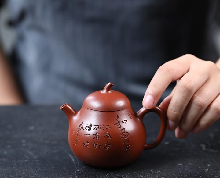 【泥料特點】砂土氣重,似淳實農民,日久使用,漸露鋒芒,養成變化,溫潤莊重。紫砂是壹種雙重氣孔結構的多孔性材質,氣孔微細,密度高。用紫砂壺沏茶,不失原味,且香不渙散,得茶之真香真味。紫砂使用越久,壺身色澤越發光亮照人,氣韻溫雅。紫砂壺長久使用器身會因撫摸擦拭,變得越發溫潤光澤。