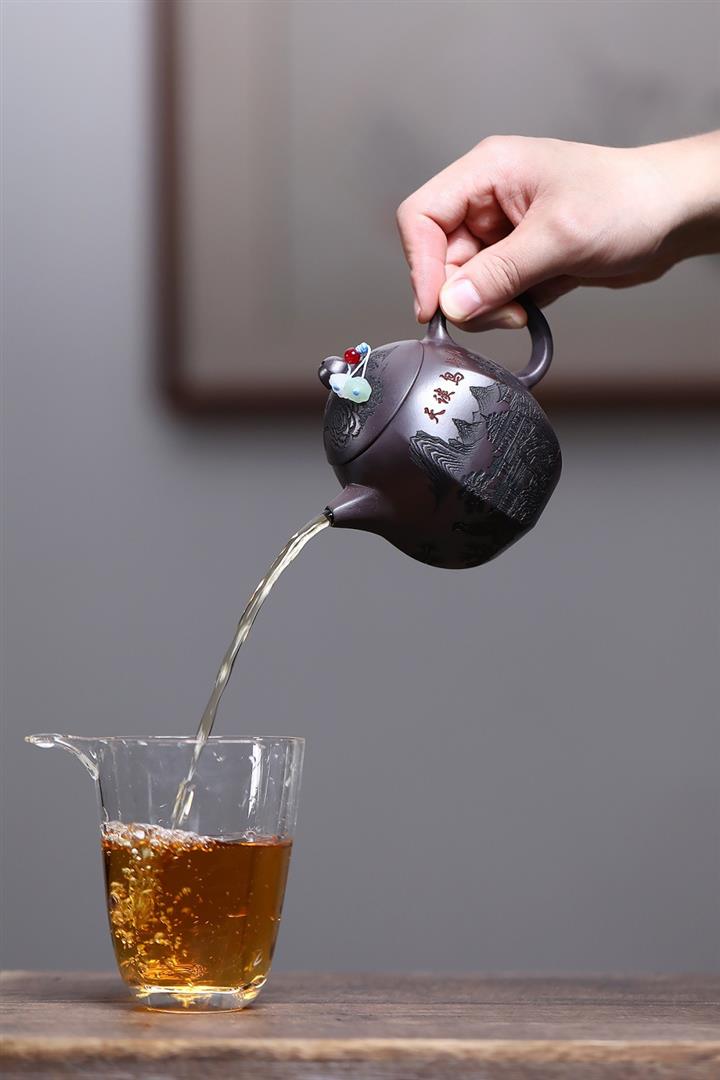 【泥料特點】砂土氣重,似淳實農民,日久使用,漸露鋒芒,養成變化,溫潤莊重。紫砂是壹種雙重氣孔結構的多孔性材質,氣孔微細,密度高。用紫砂壺沏茶,不失原味,且香不渙散,得茶之真香真味。紫砂使用越久,壺身色澤越發光亮照人,氣韻溫雅。紫砂壺長久使用器身會因撫摸擦拭,變得越發溫潤光澤。