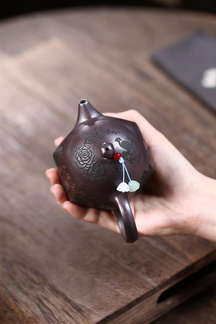 【作品介紹】此款壺形線條流暢,壺把,壺嘴,壺身壹氣呵成栩栩如生,是收藏把玩的好壺,泥料色澤古樸典雅,日久使用,漸露鋒芒,養成變化快,溫潤莊重,用其泡茶,使用的年代久,壺身就溫潤,泡出來的茶湯也就醇郁芳馨。