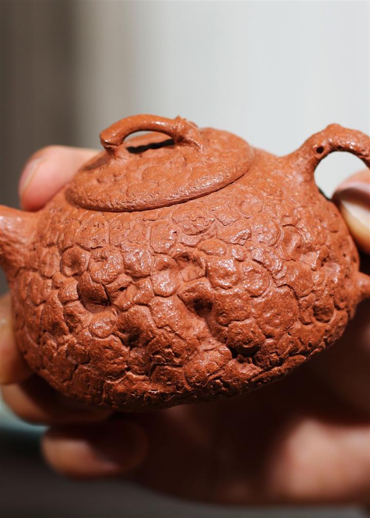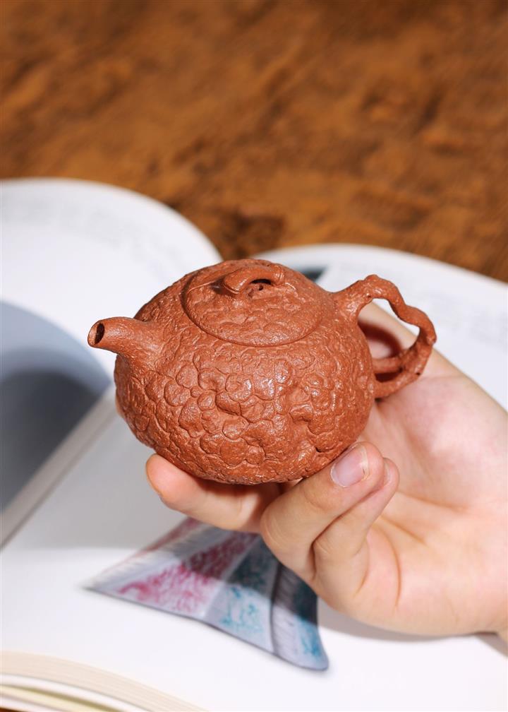 【泥料特點】砂土氣重,似淳實農民,日久使用,漸露鋒芒,養成變化,溫潤莊重。紫砂是壹種雙重氣孔結構的多孔性材質,氣孔微細,密度高。用紫砂壺沏茶,不失原味,且香不渙散,得茶之真香真味。紫砂使用越久,壺身色澤越發光亮照人,氣韻溫雅。紫砂壺長久使用器身會因撫摸擦拭,變得越發溫潤光澤。