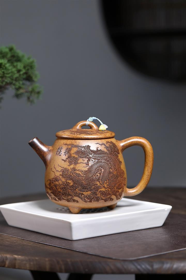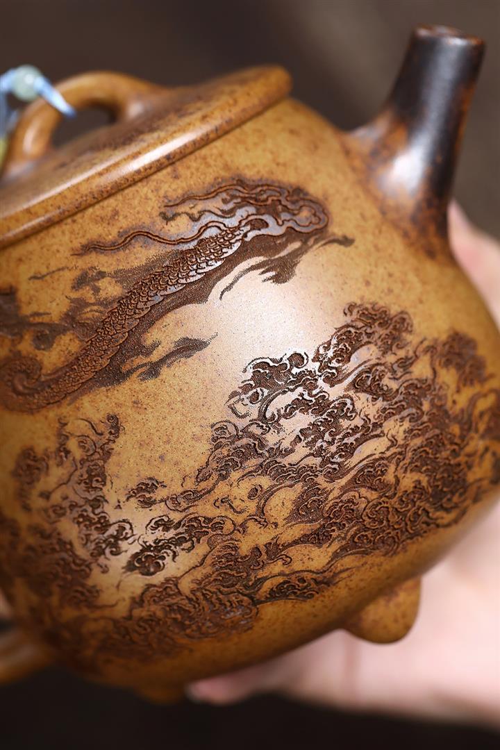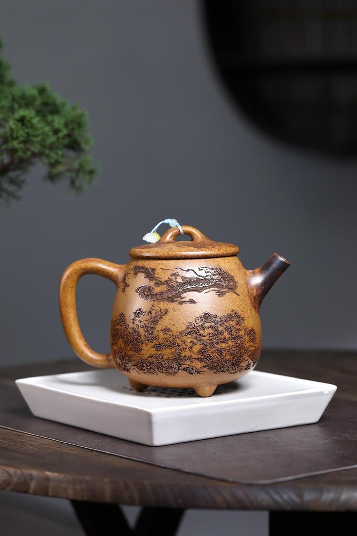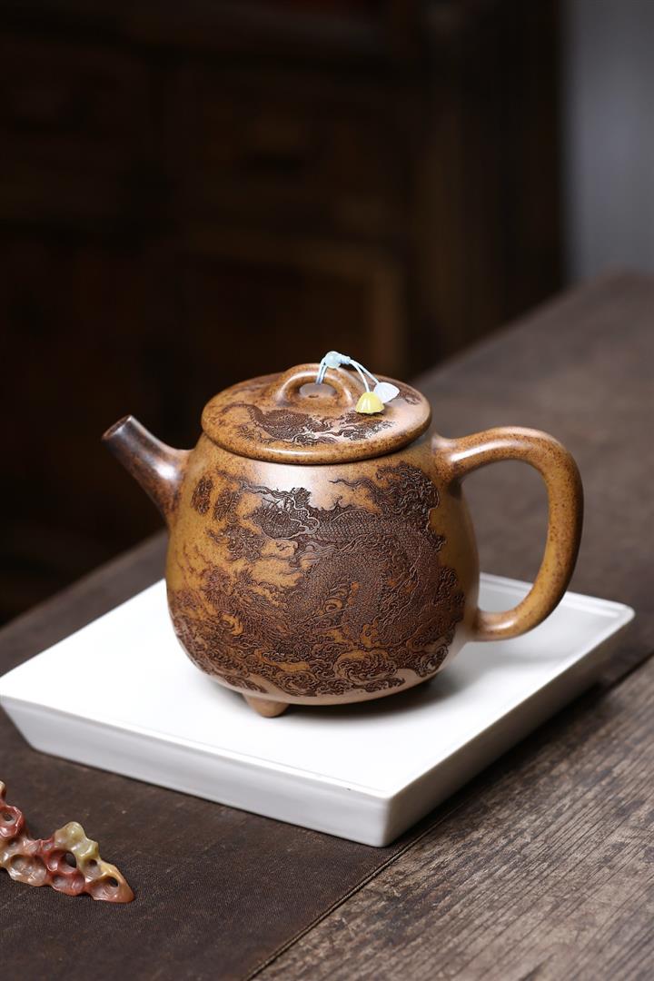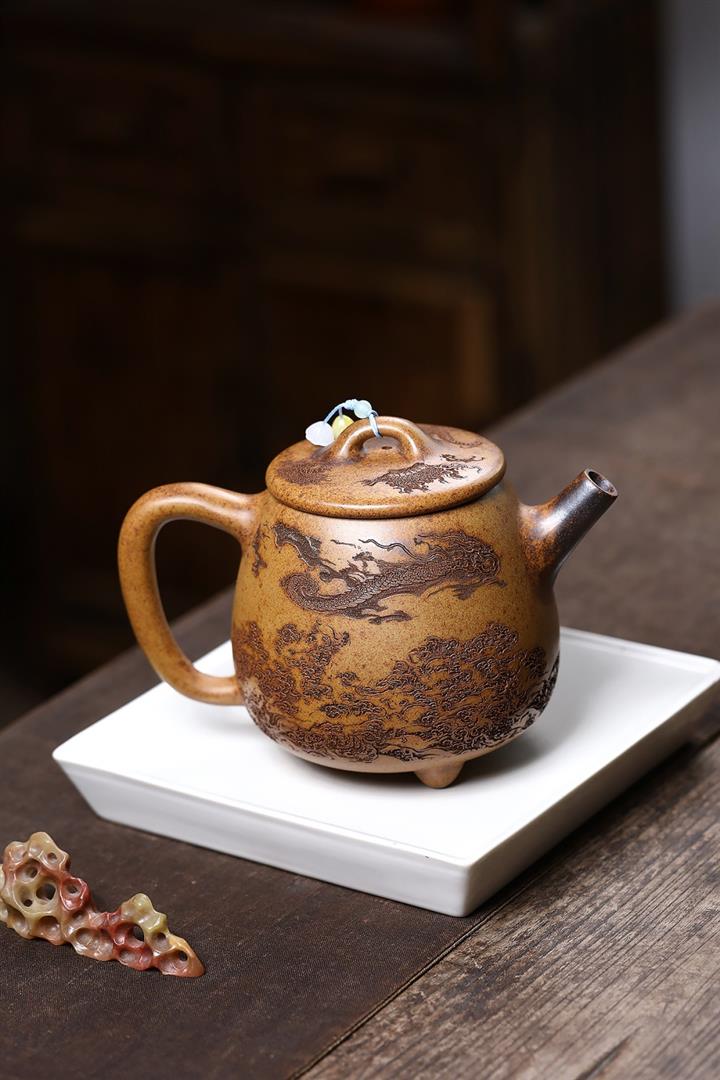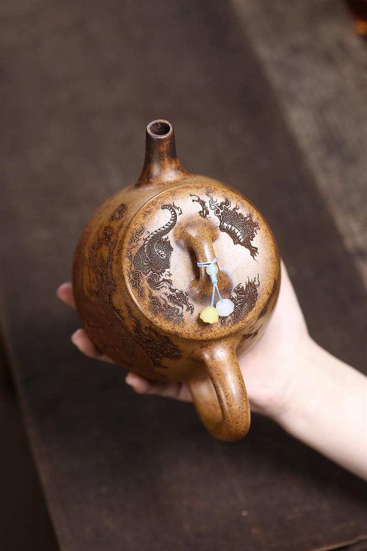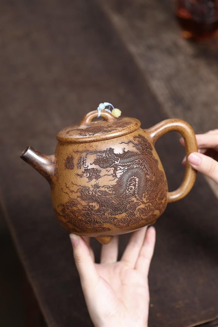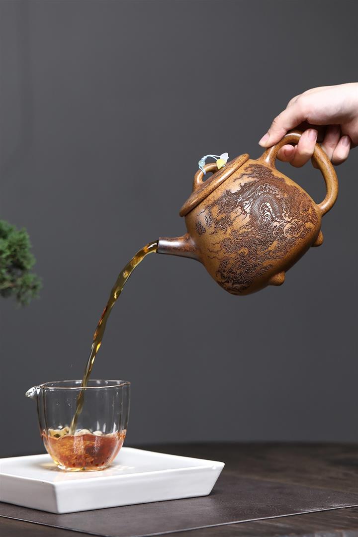手工紫砂壺茶具黑朱泥龍飛鳳舞原礦紫砂茶壺pot3747
