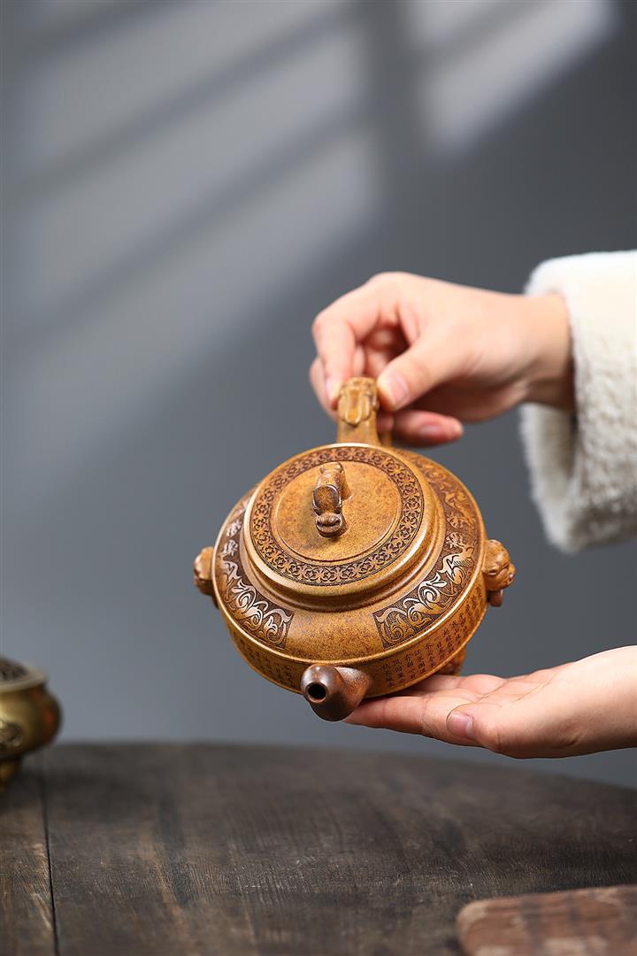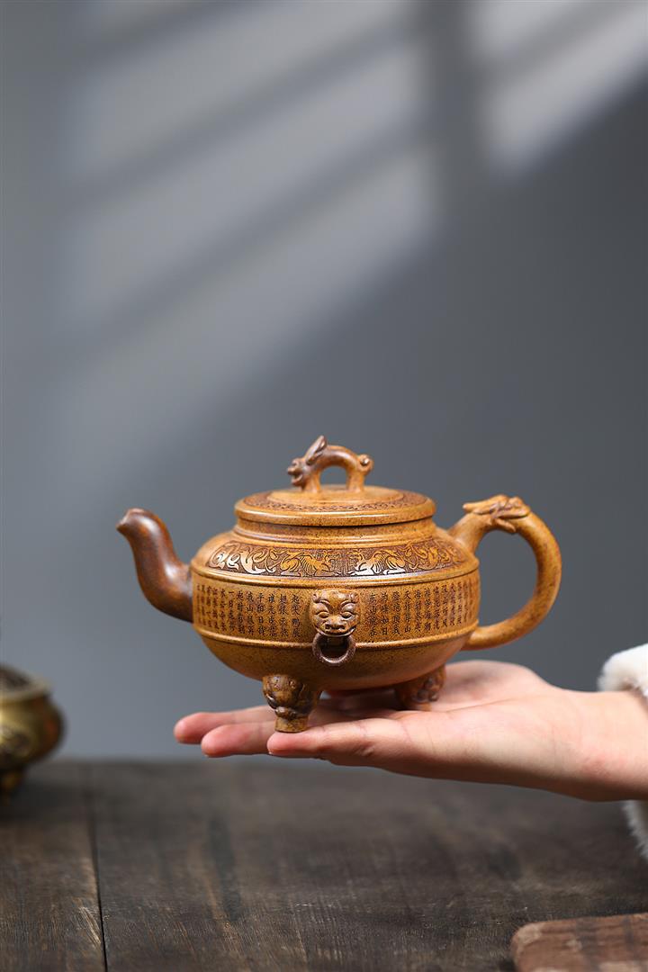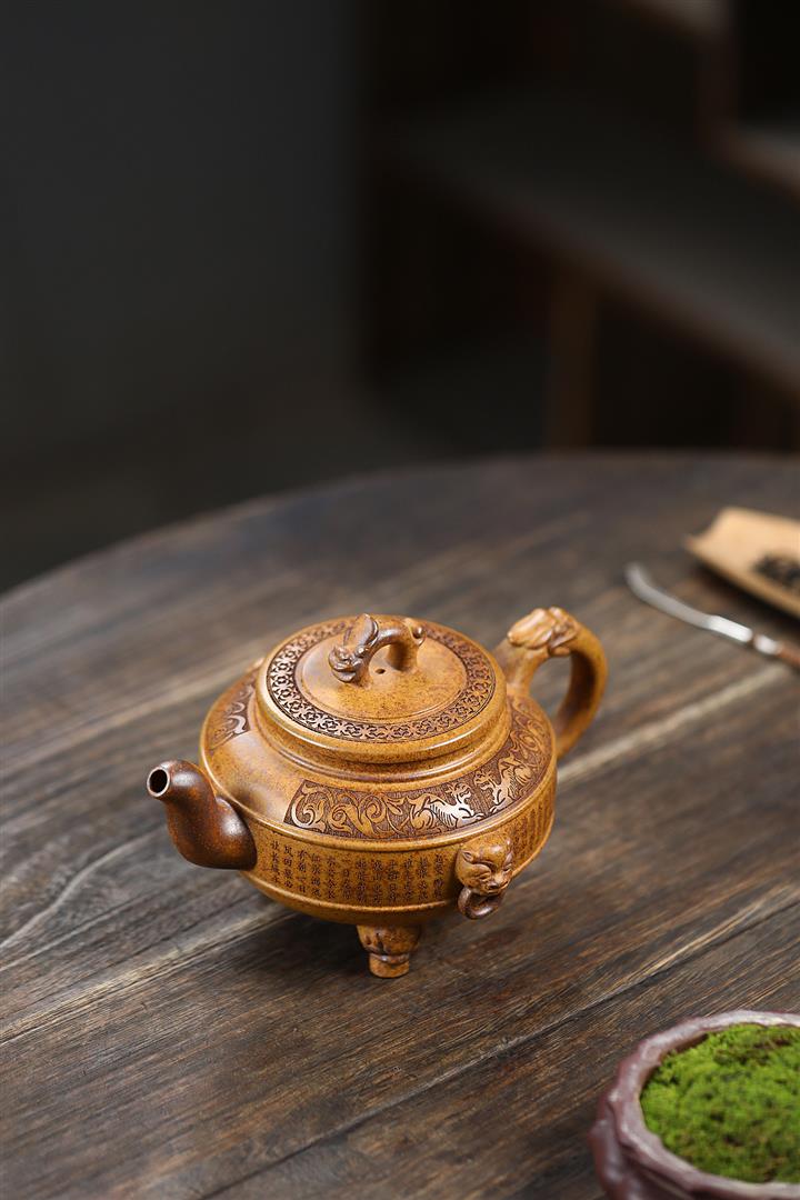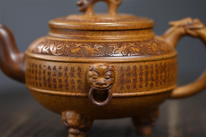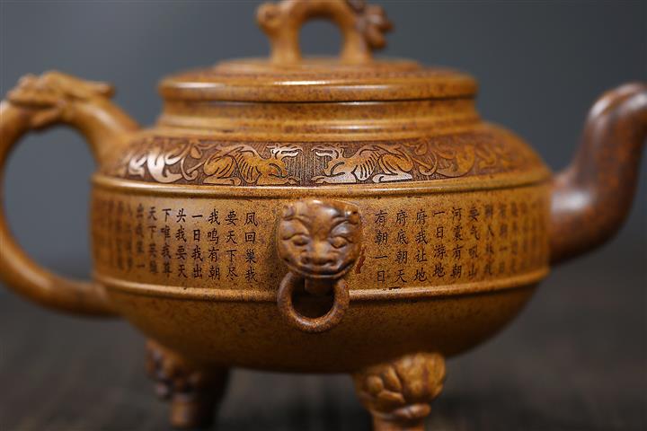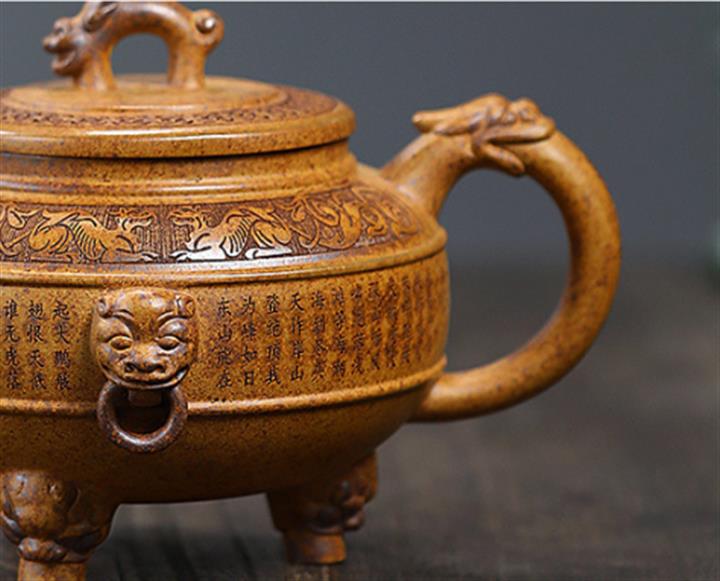 原礦玄鐵石黃喜上眉梢高龍蛋茶壺POT7549
