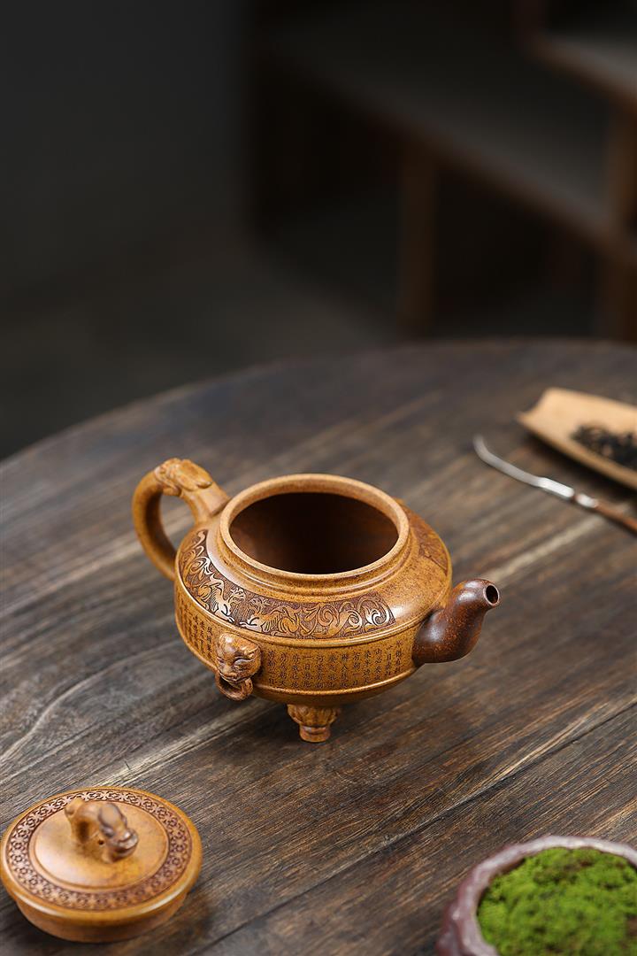 460cc特高溫柴燒段泥三足銜環茶壺POT8275