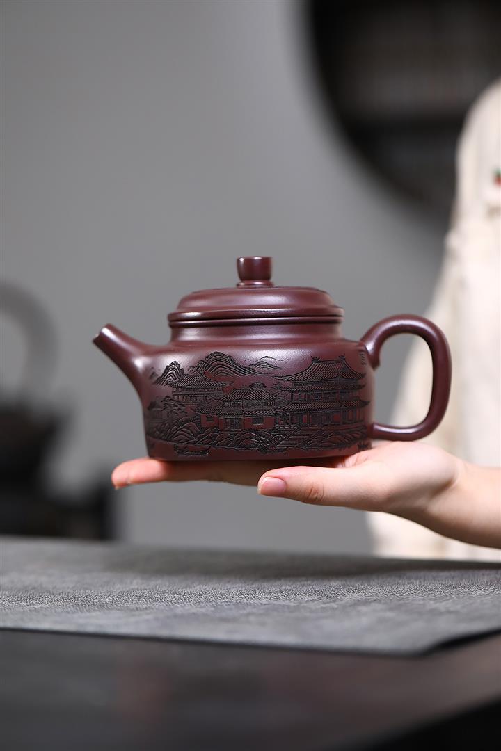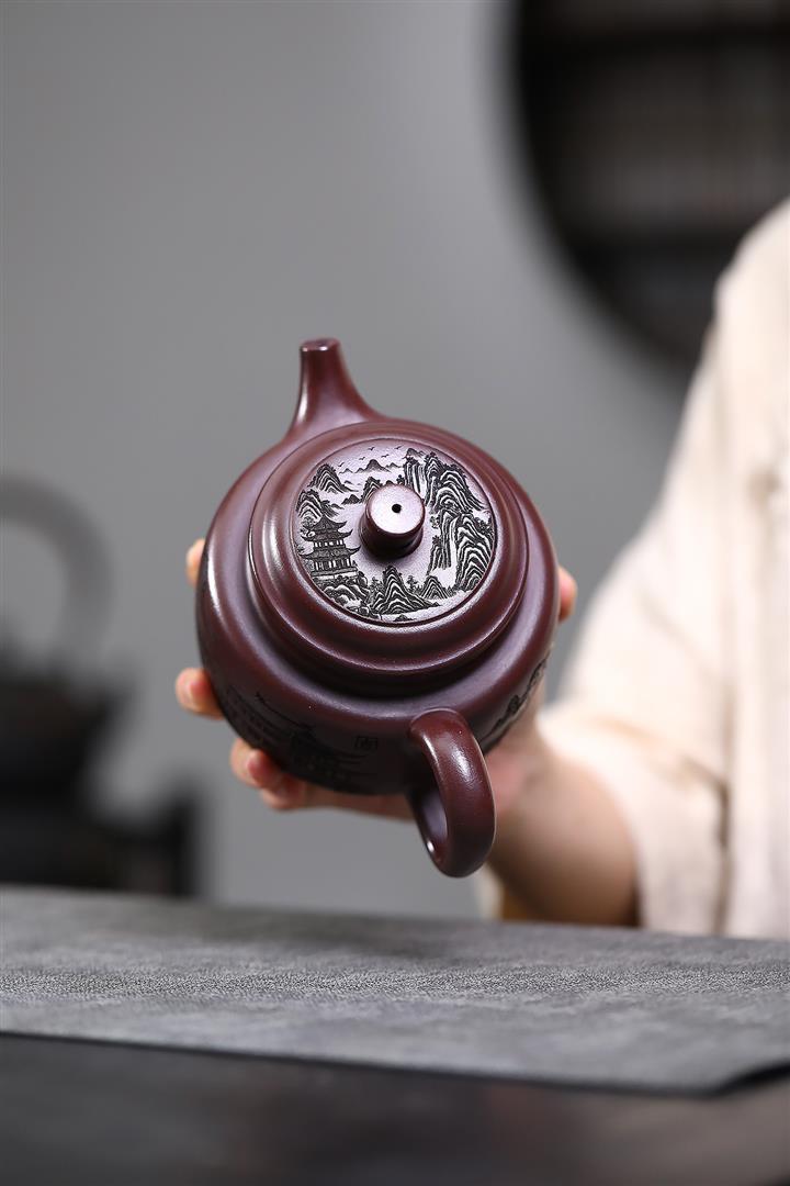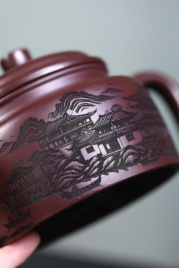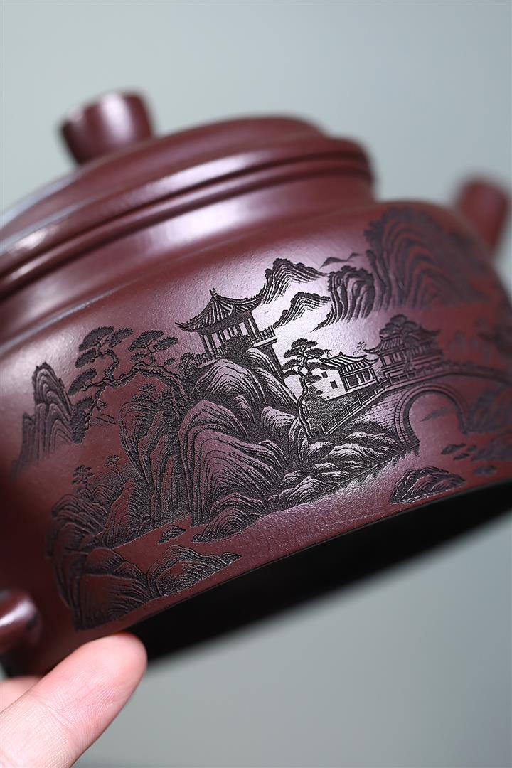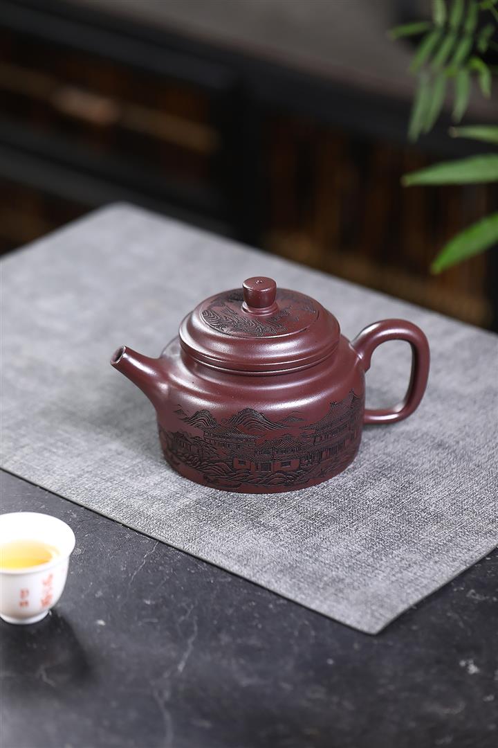 450cc原礦紫泥滿刻大德鐘茶壺POT8290