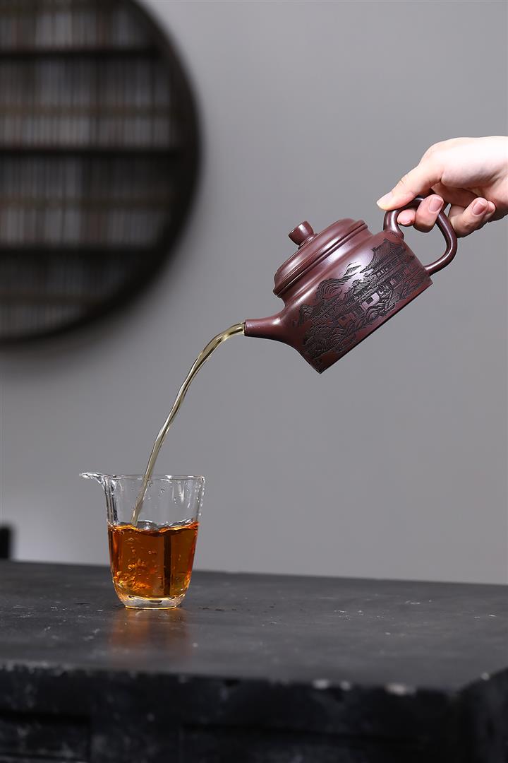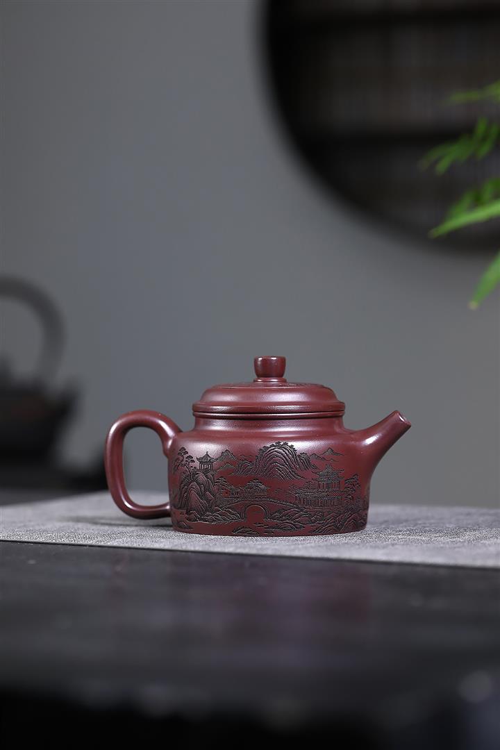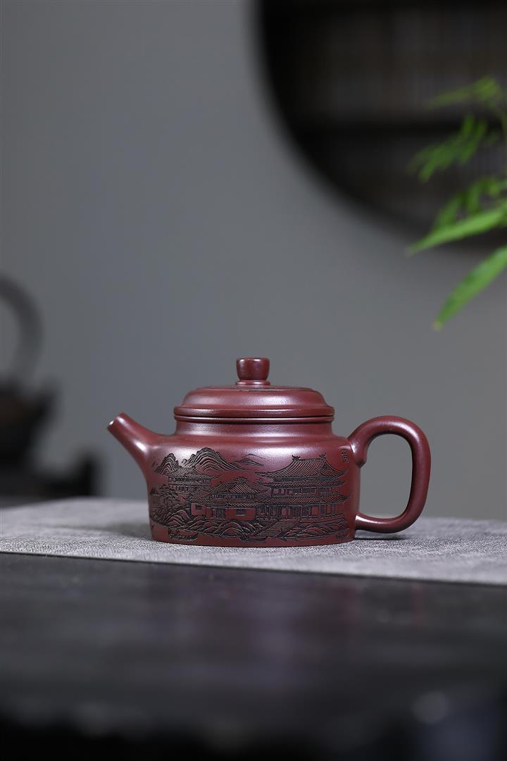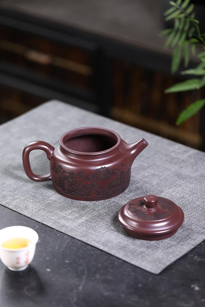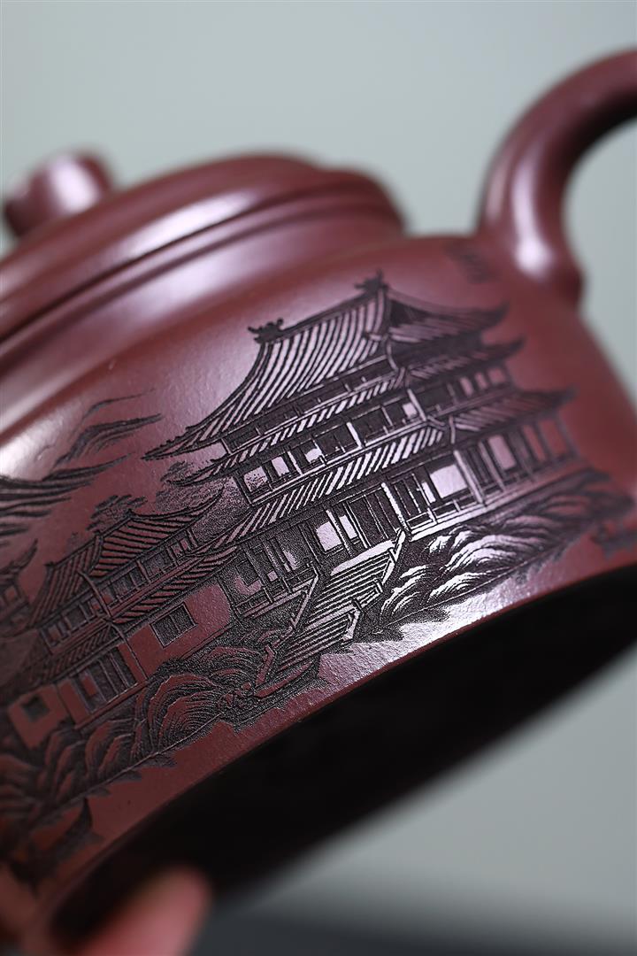 450cc原礦紫泥滿刻大德鐘茶壺POT8290