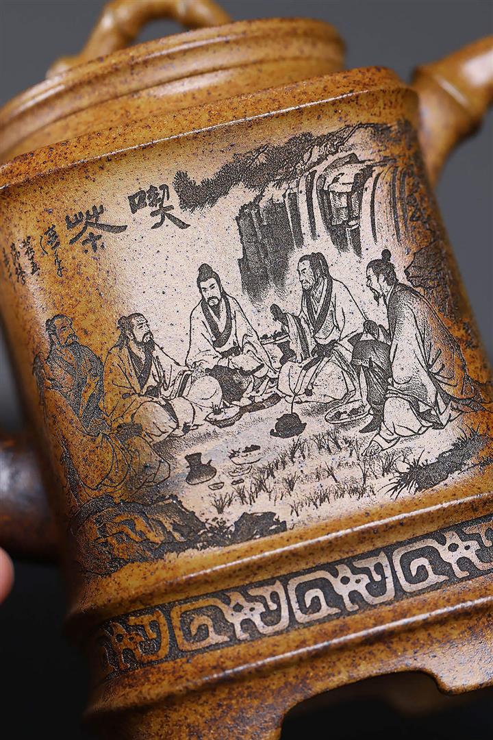 原礦大紅袍五福圖漢瓦茶壺POT7610