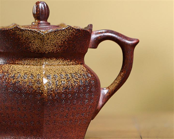 【泥料特點】砂土氣重,似淳實農民,日久使用,漸露鋒芒,養成變化,溫潤莊重。紫砂是壹種雙重氣孔結構的多孔性材質,氣孔微細,密度高。用紫砂壺沏茶,不失原味,且香不渙散,得茶之真香真味。紫砂使用越久,壺身色澤越發光亮照人,氣韻溫雅。紫砂壺長久使用器身會因撫摸擦拭,變得越發溫潤光澤。