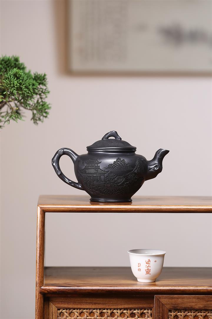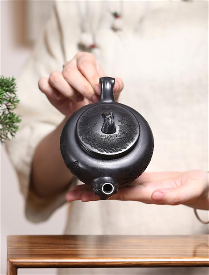 300cc原礦玄鐵黑料報春茶壺POT8295