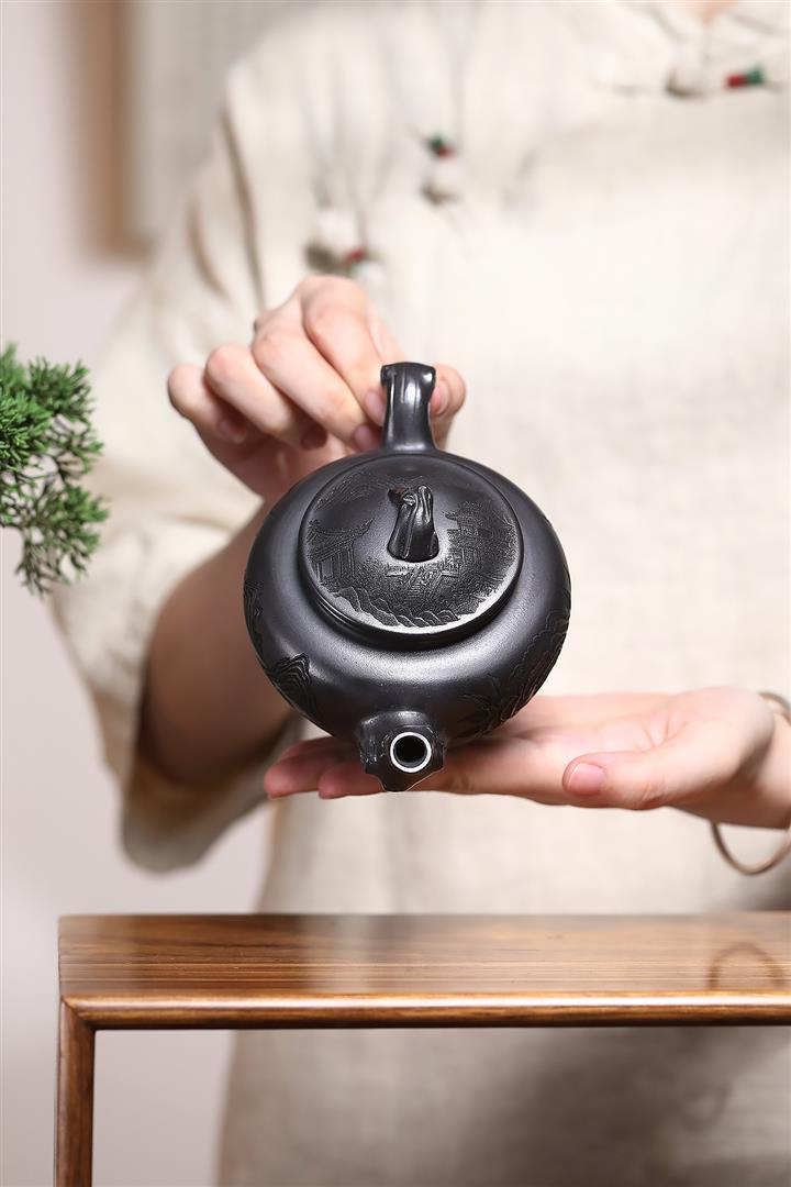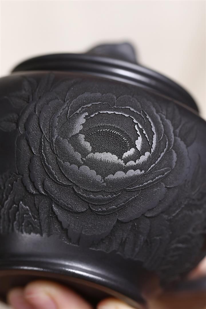 原礦皺皮朱泥墨梅扁碗玉壺茶壺POT6804