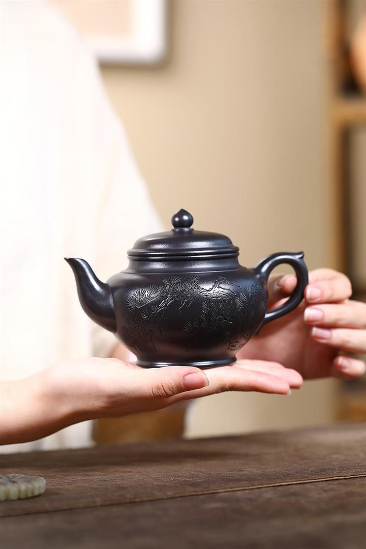 150cc原礦大紅袍焐灰灑金寒江茶壺POT8219