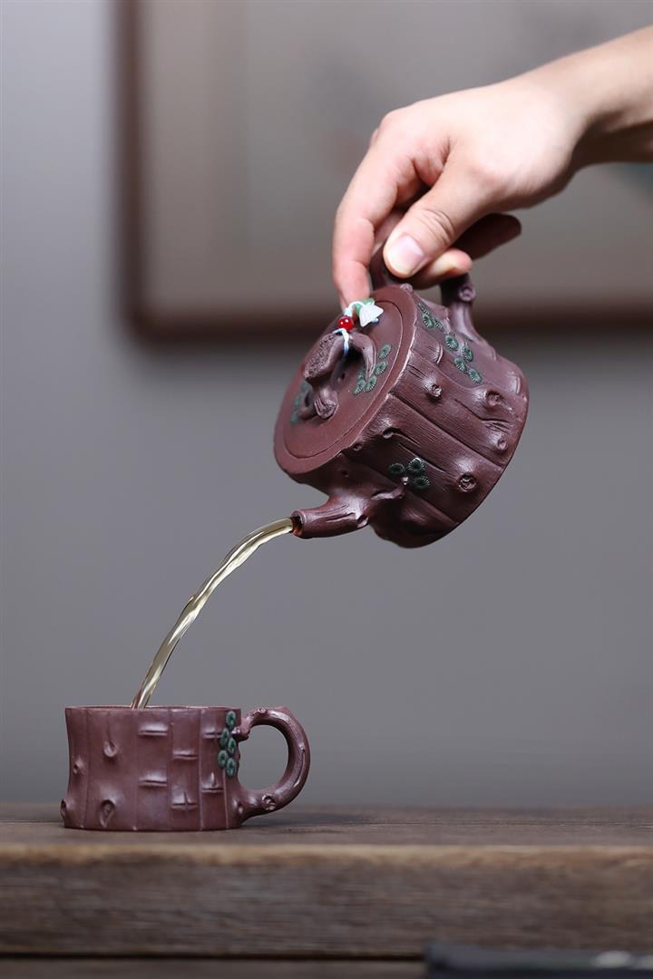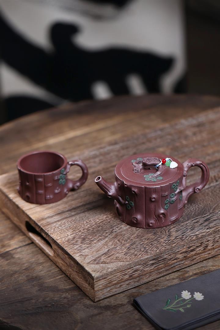 250cc原礦老紫泥樹樁木影對酌茶壺POT8299
