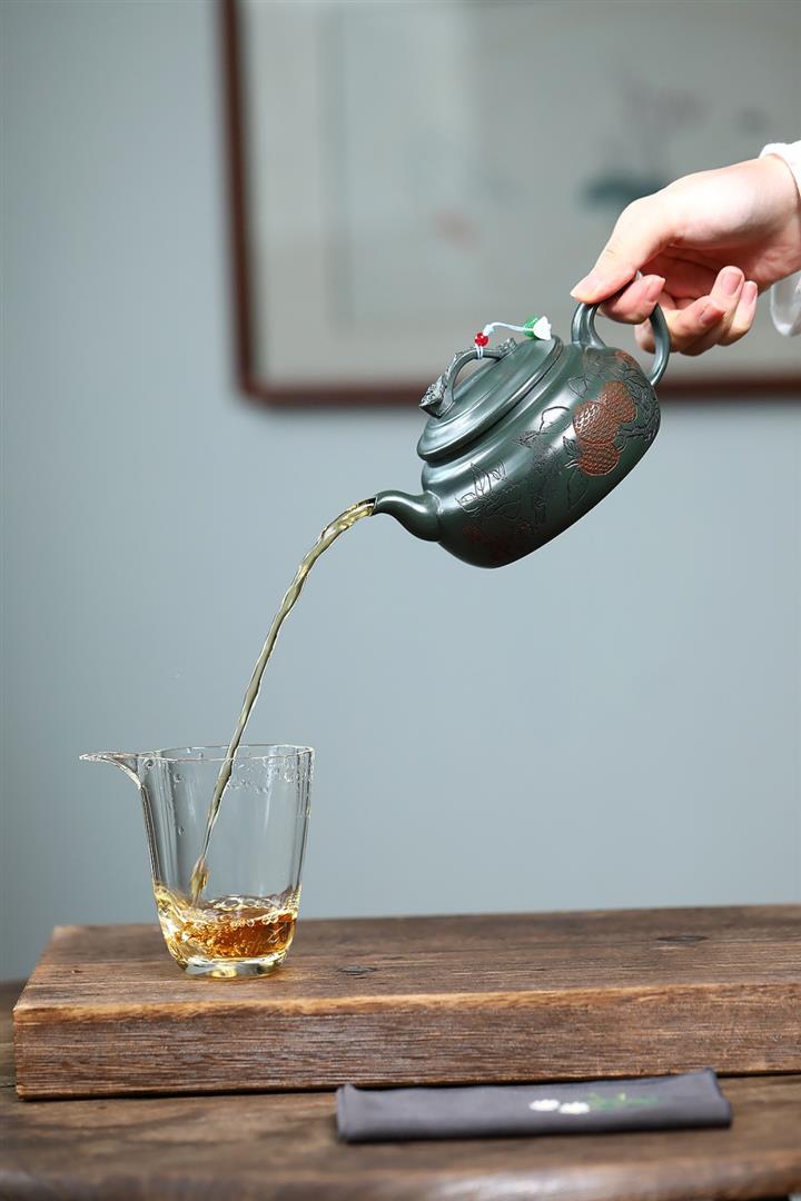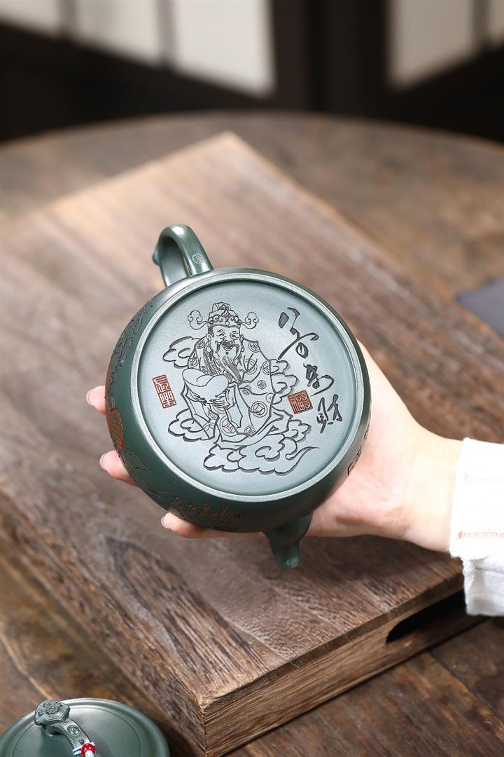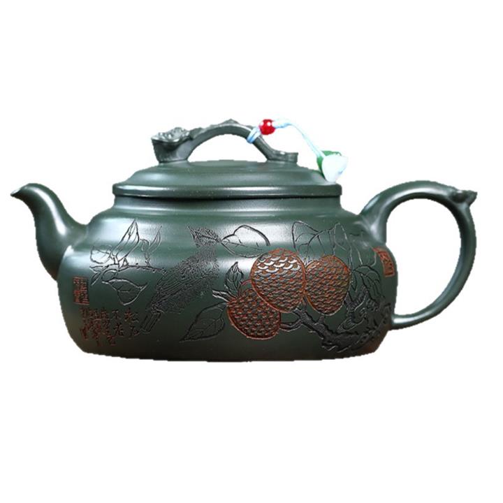 400cc原礦墨綠泥刻繪如意松趣茶壺POT8304