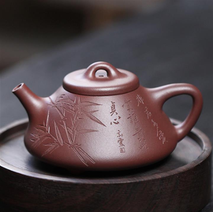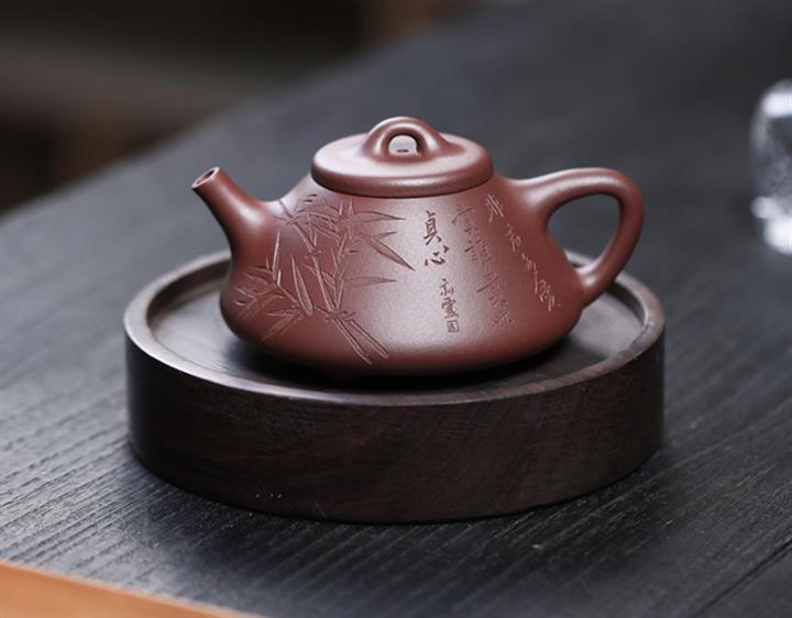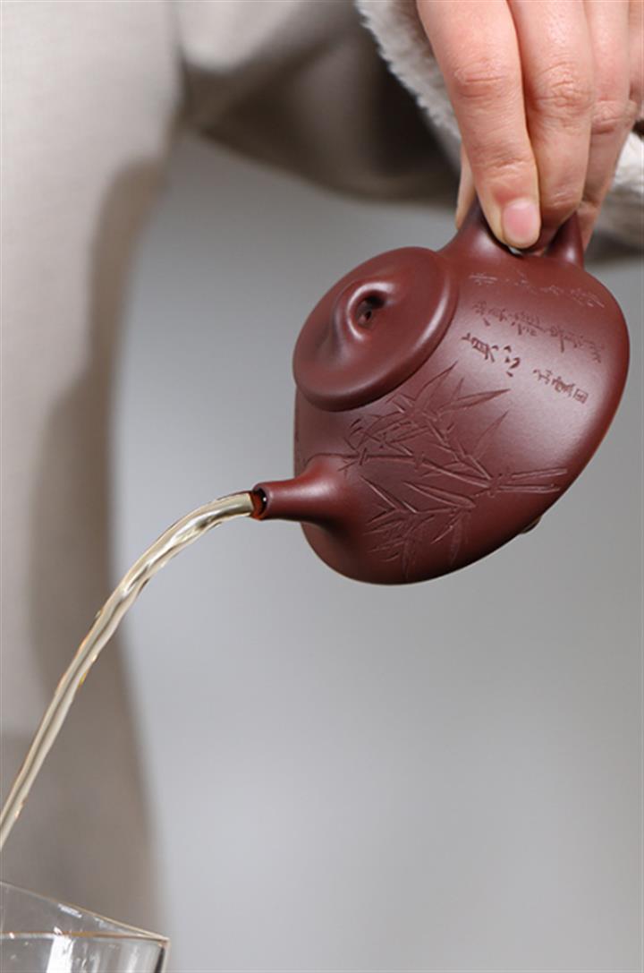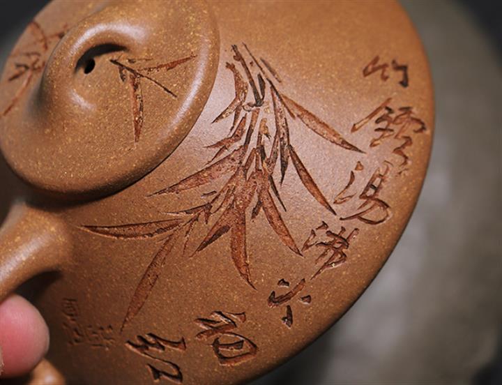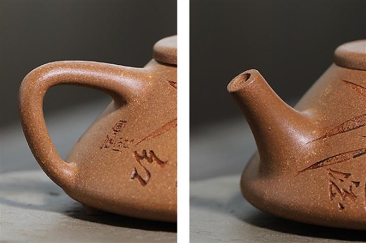 【泥料特點】砂土氣重,似淳實農民,日久使用,漸露鋒芒,養成變化,溫潤莊重。紫砂是壹種雙重氣孔結構的多孔性材質,氣孔微細,密度高。用紫砂壺沏茶,不失原味,且香不渙散,得茶之真香真味。紫砂使用越久,壺身色澤越發光亮照人,氣韻溫雅。紫砂壺長久使用器身會因撫摸擦拭,變得越發溫潤光澤。