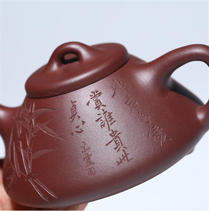 【作品介紹】此款壺形線條流暢,壺把,壺嘴,壺身壹氣呵成栩栩如生,是收藏把玩的好壺,泥料色澤古樸典雅,日久使用,漸露鋒芒,養成變化快,溫潤莊重,用其泡茶,使用的年代久,壺身就溫潤,泡出來的茶湯也就醇郁芳馨。