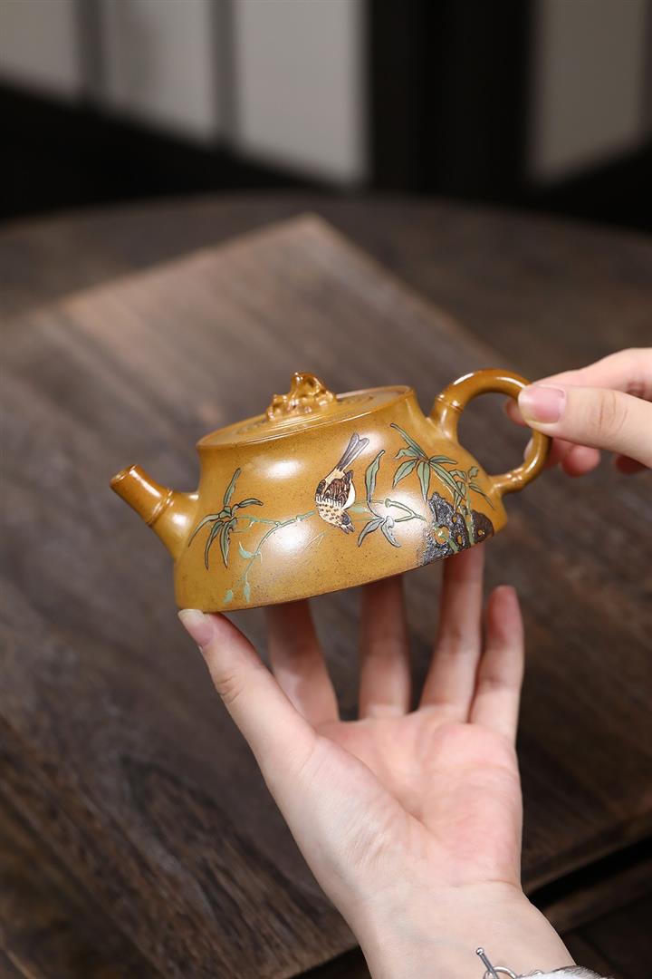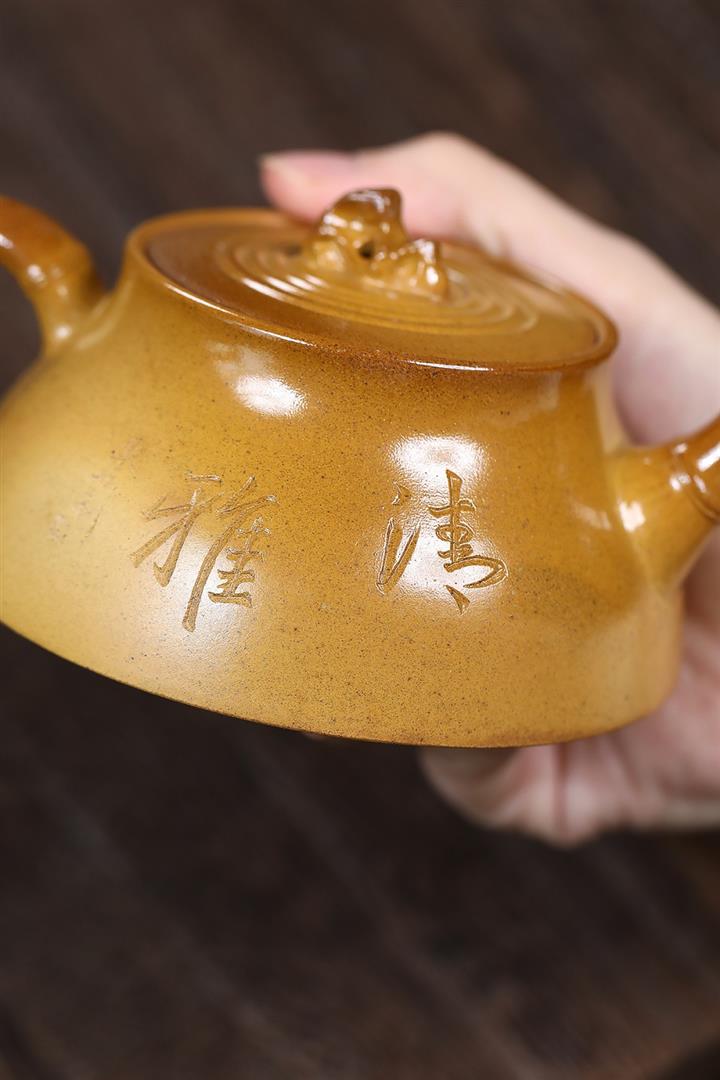 【作品介紹】此款壺形線條流暢,壺把,壺嘴,壺身壹氣呵成栩栩如生,是收藏把玩的好壺,泥料色澤古樸典雅,日久使用,漸露鋒芒,養成變化快,溫潤莊重,用其泡茶,使用的年代久,壺身就溫潤,泡出來的茶湯也就醇郁芳馨。