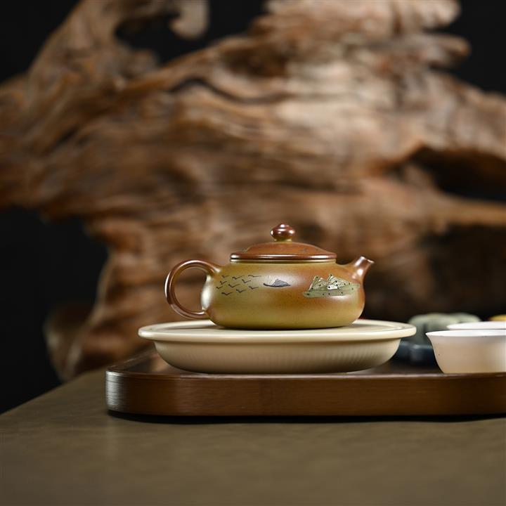 190cc原礦段泥寒江泥繪茶壺POT8357