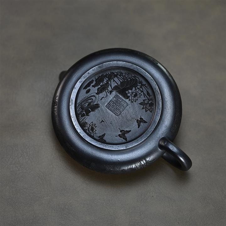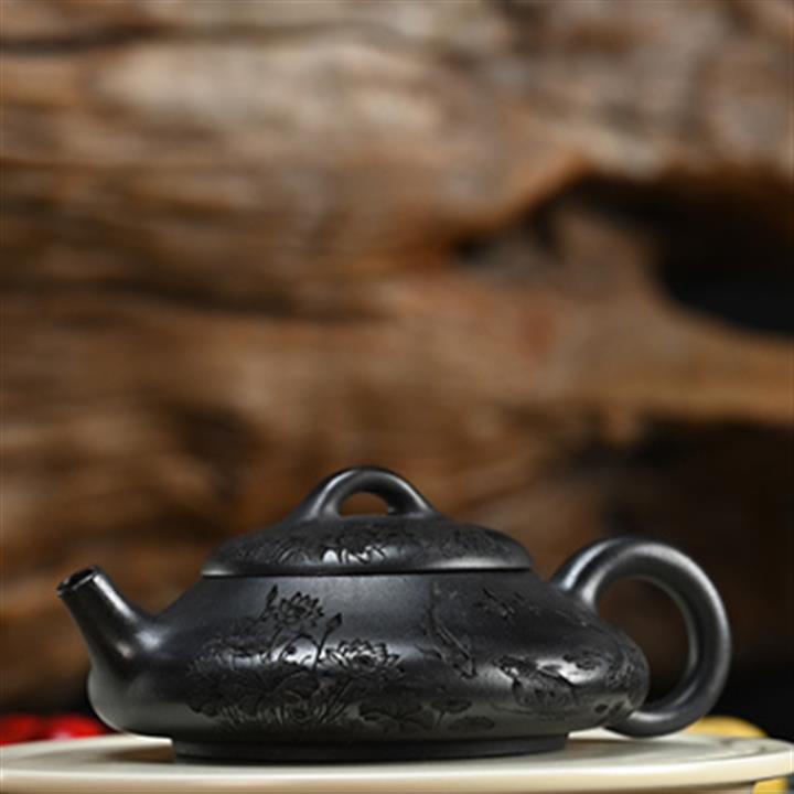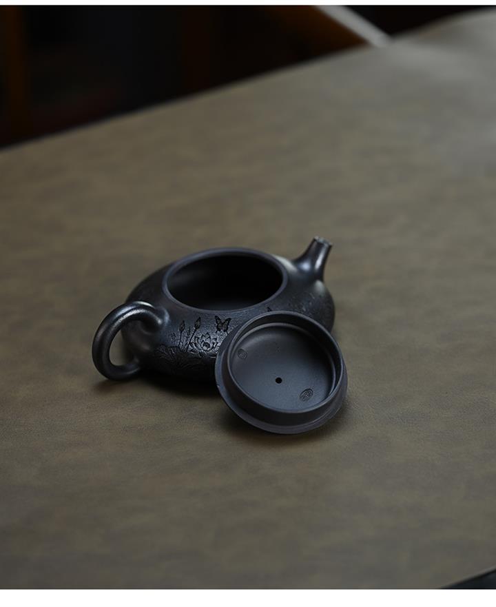 原礦紫泥手工祥雲扁瓢紫砂壺石瓢壺pot3643