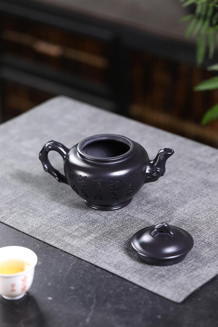 150cc原礦紫泥柴燒八方來財茶壺POT7962