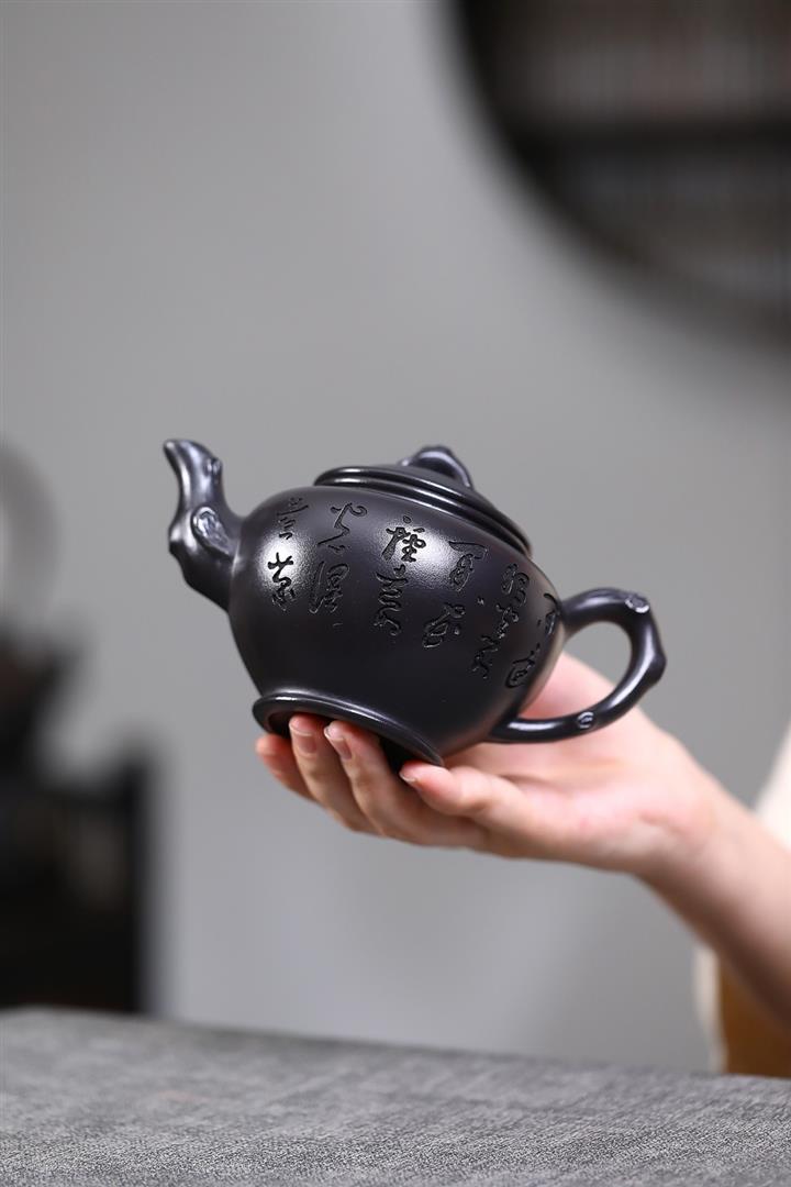 【作品介紹】此款壺形線條流暢,壺把,壺嘴,壺身壹氣呵成栩栩如生,是收藏把玩的好壺,泥料色澤古樸典雅,日久使用,漸露鋒芒,養成變化快,溫潤莊重,用其泡茶,使用的年代久,壺身就溫潤,泡出來的茶湯也就醇郁芳馨。