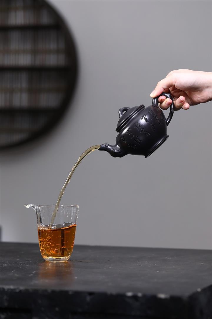 【泥料特點】砂土氣重,似淳實農民,日久使用,漸露鋒芒,養成變化,溫潤莊重。紫砂是壹種雙重氣孔結構的多孔性材質,氣孔微細,密度高。用紫砂壺沏茶,不失原味,且香不渙散,得茶之真香真味。紫砂使用越久,壺身色澤越發光亮照人,氣韻溫雅。紫砂壺長久使用器身會因撫摸擦拭,變得越發溫潤光澤。