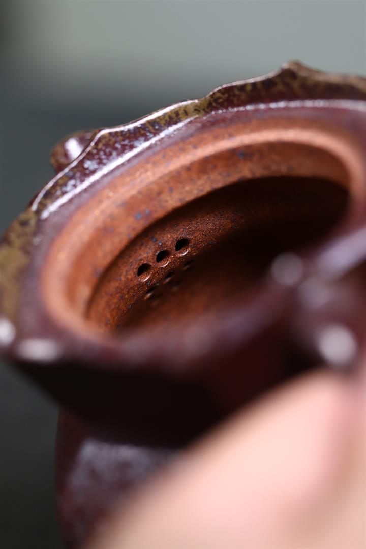 【泥料特點】砂土氣重,似淳實農民,日久使用,漸露鋒芒,養成變化,溫潤莊重。紫砂是壹種雙重氣孔結構的多孔性材質,氣孔微細,密度高。用紫砂壺沏茶,不失原味,且香不渙散,得茶之真香真味。紫砂使用越久,壺身色澤越發光亮照人,氣韻溫雅。紫砂壺長久使用器身會因撫摸擦拭,變得越發溫潤光澤。