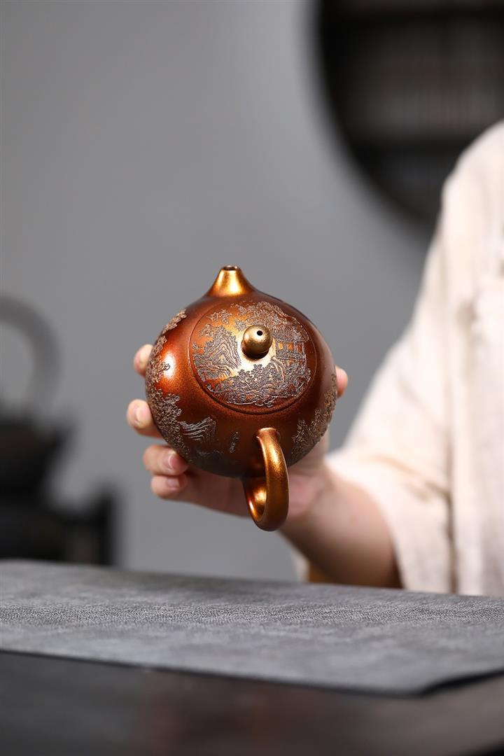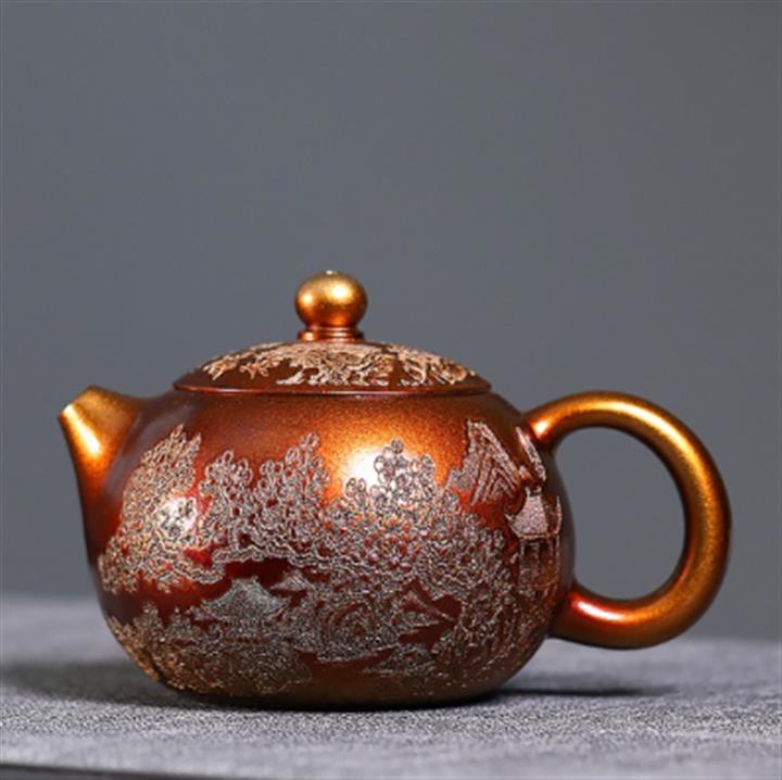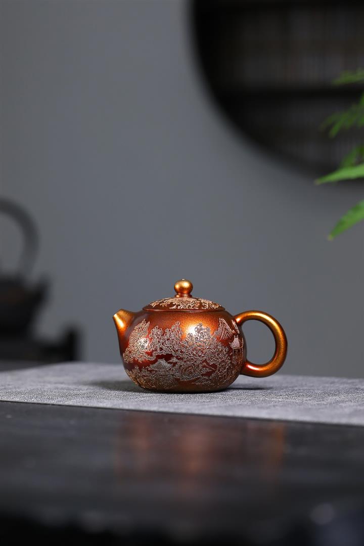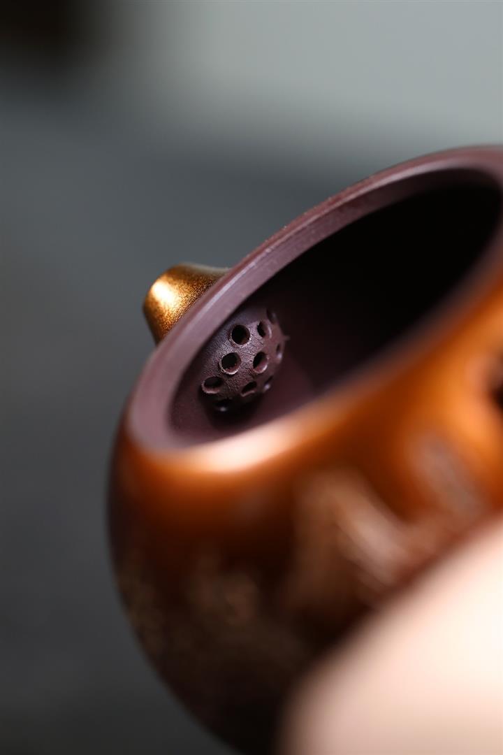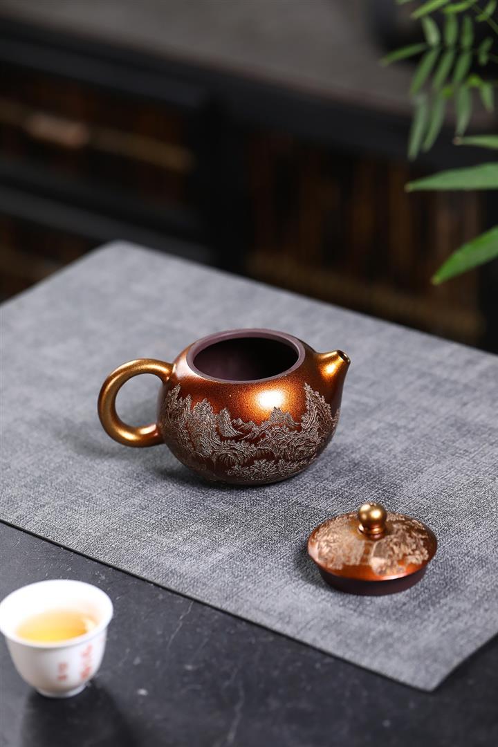 320cc原礦石紅泥貝殼燒金砂逸景壺POT8400