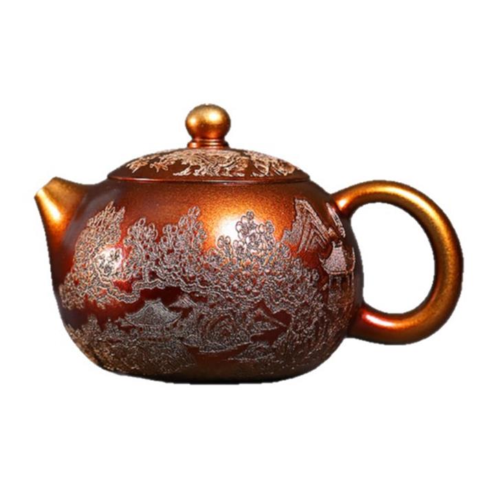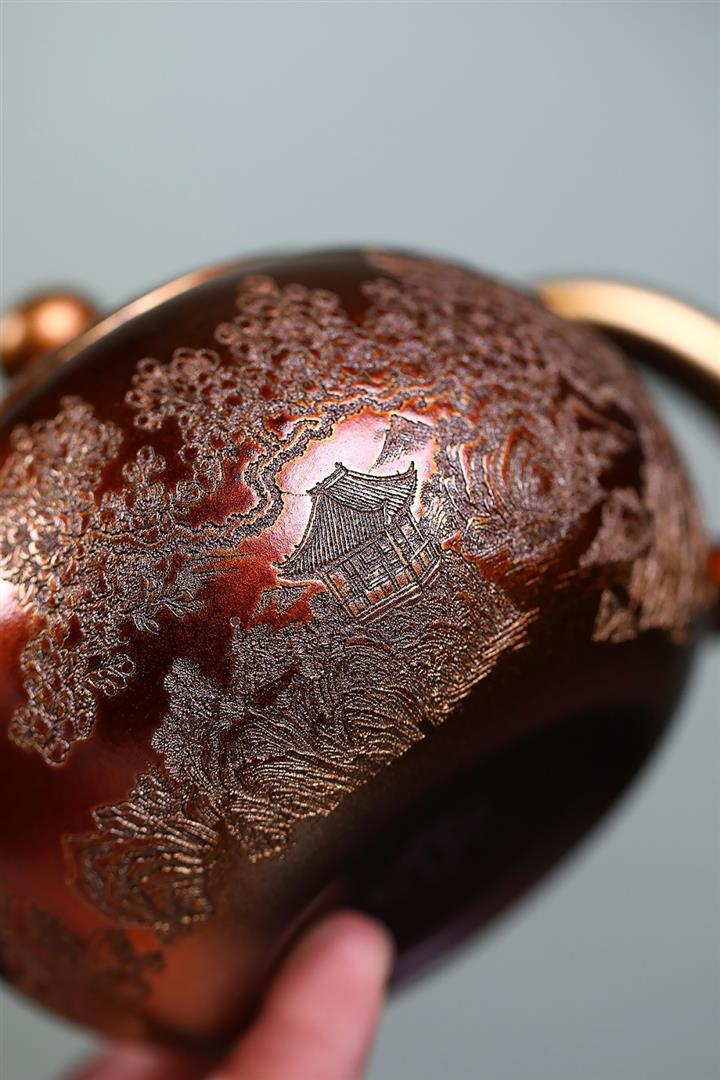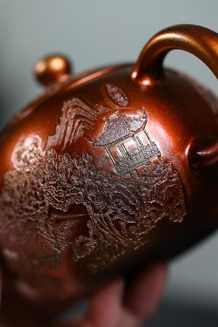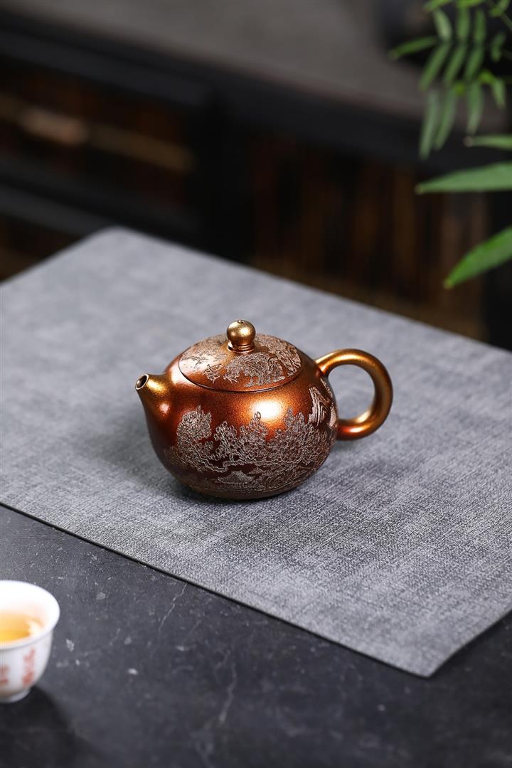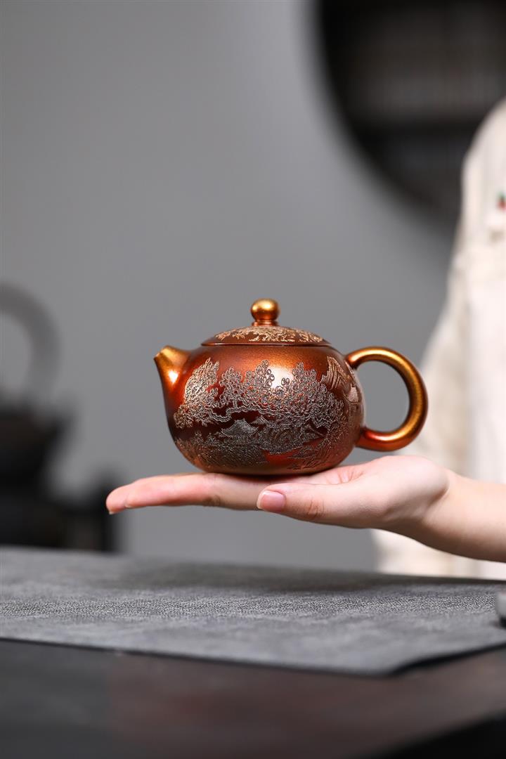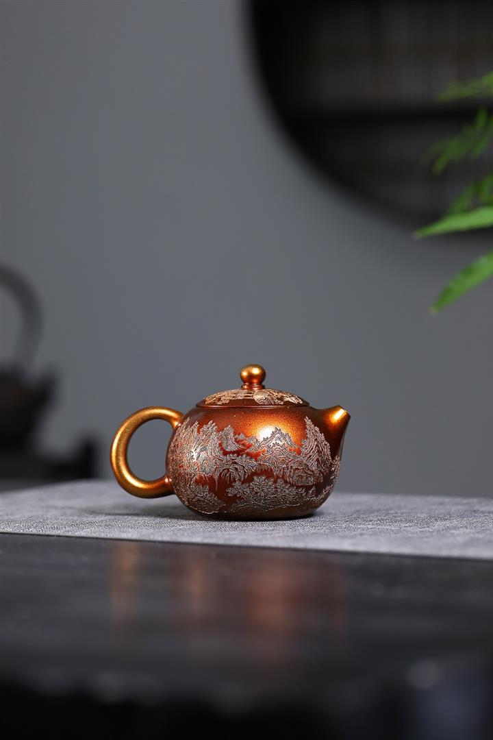 320cc原礦石紅泥貝殼燒金砂逸景壺POT8400
