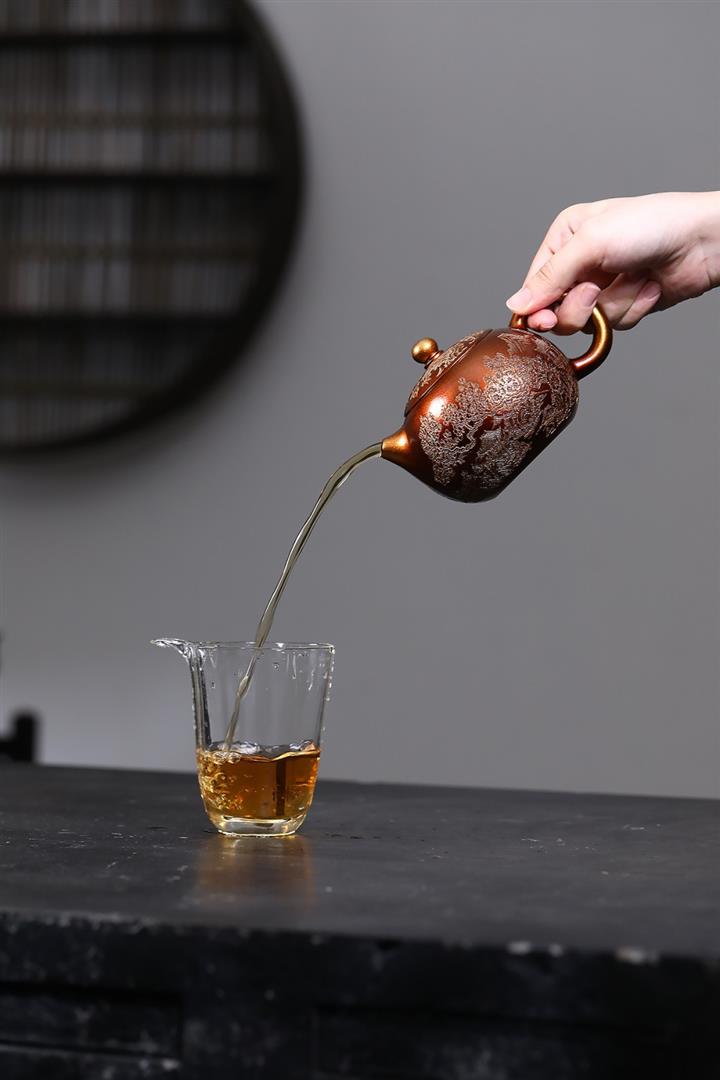 【泥料特點】砂土氣重,似淳實農民,日久使用,漸露鋒芒,養成變化,溫潤莊重。紫砂是壹種雙重氣孔結構的多孔性材質,氣孔微細,密度高。用紫砂壺沏茶,不失原味,且香不渙散,得茶之真香真味。紫砂使用越久,壺身色澤越發光亮照人,氣韻溫雅。紫砂壺長久使用器身會因撫摸擦拭,變得越發溫潤光澤。