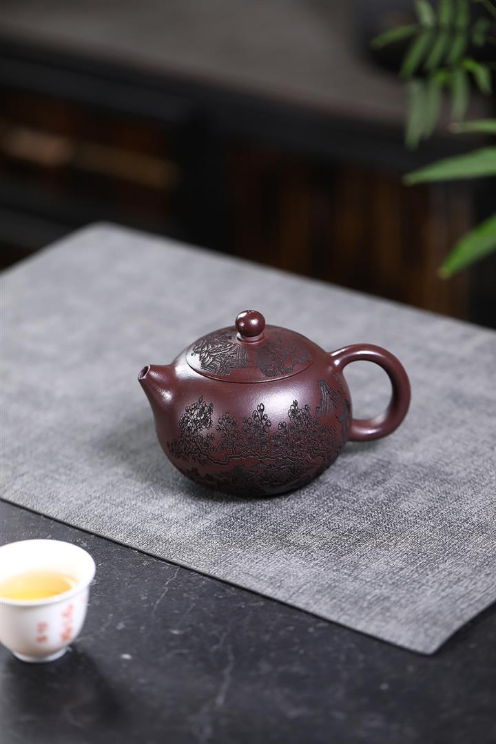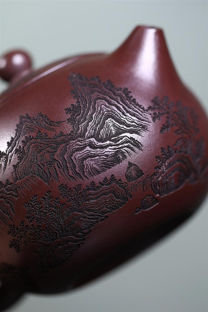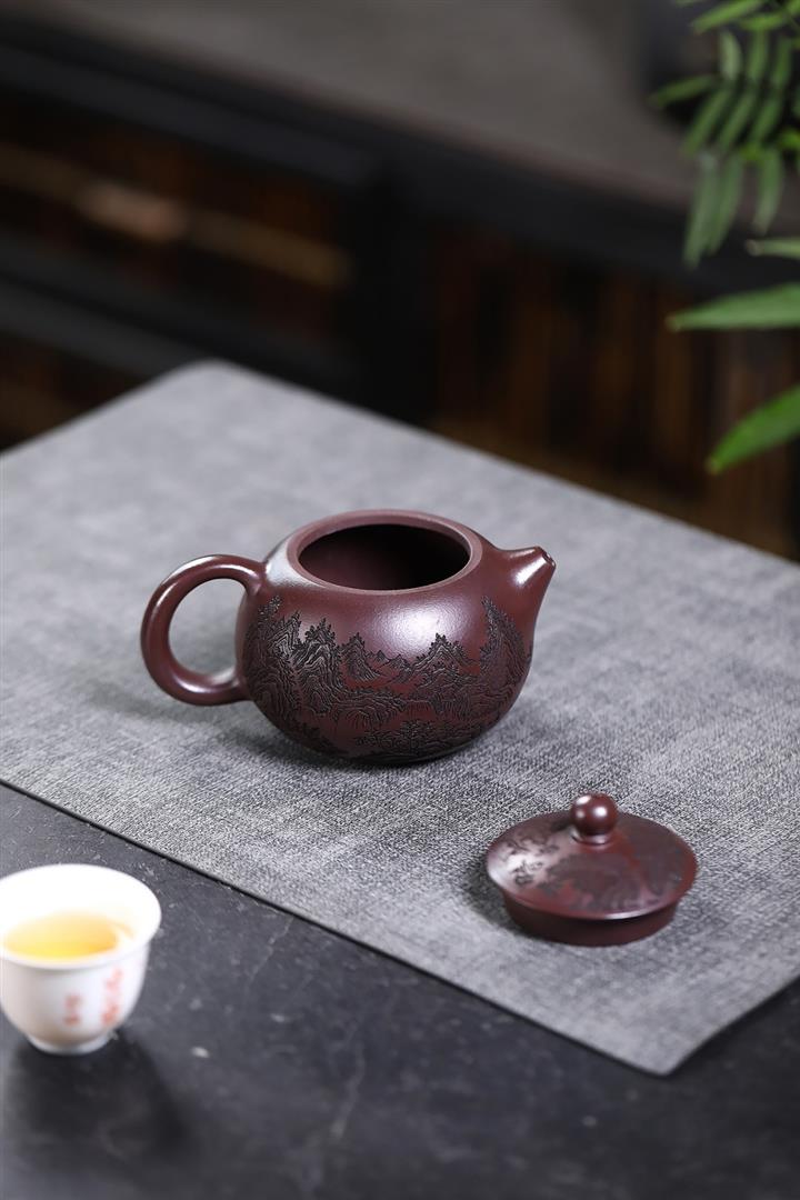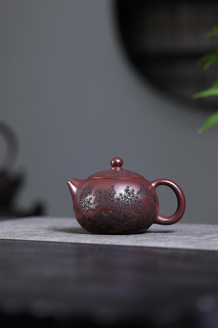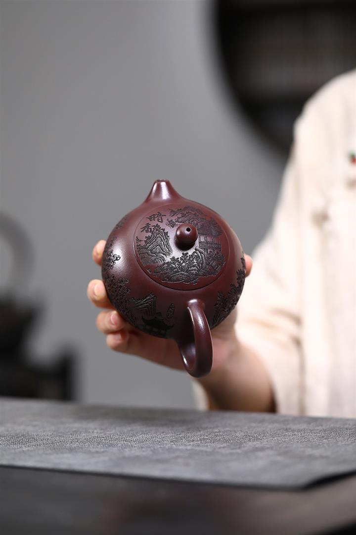 320cc原礦石紅泥滿刻桃源西施茶壺POT8404