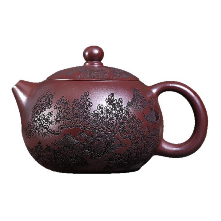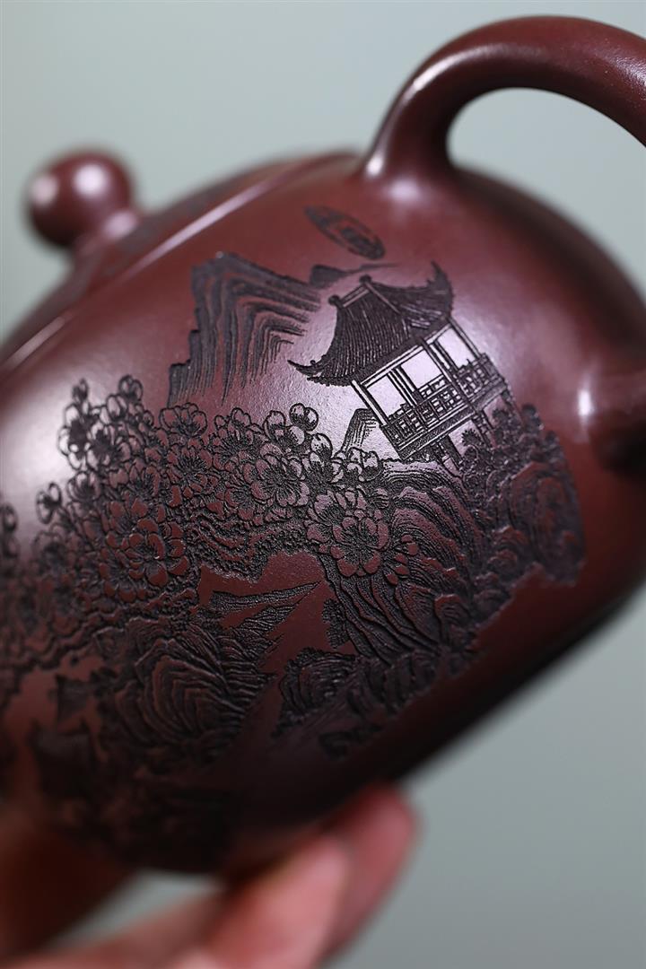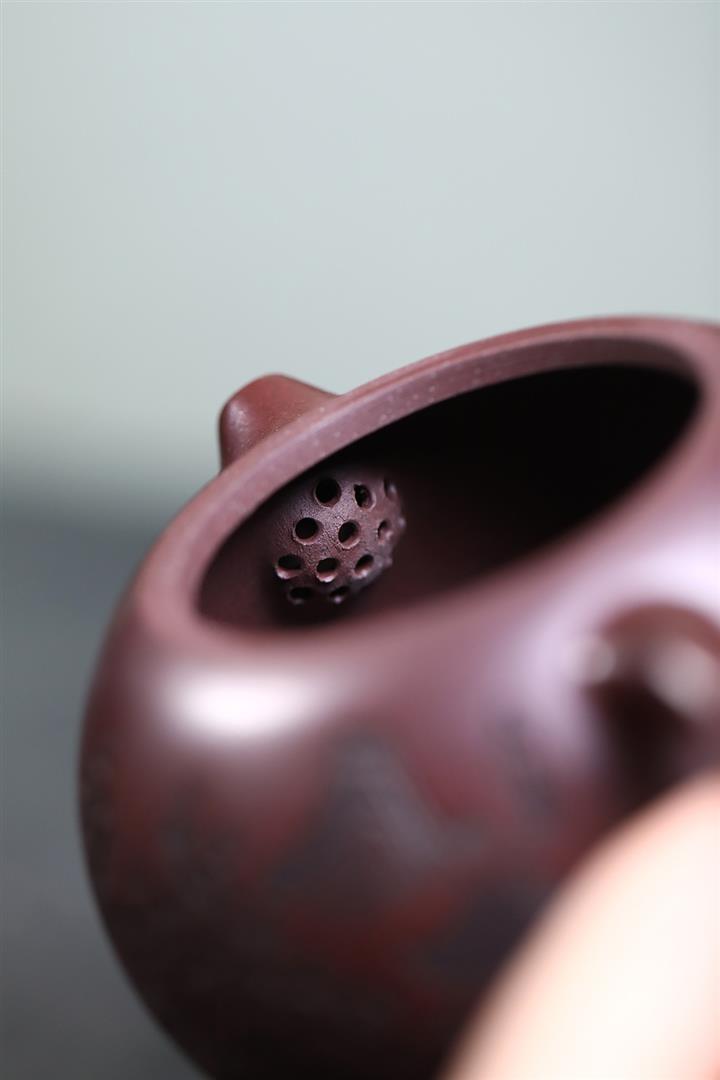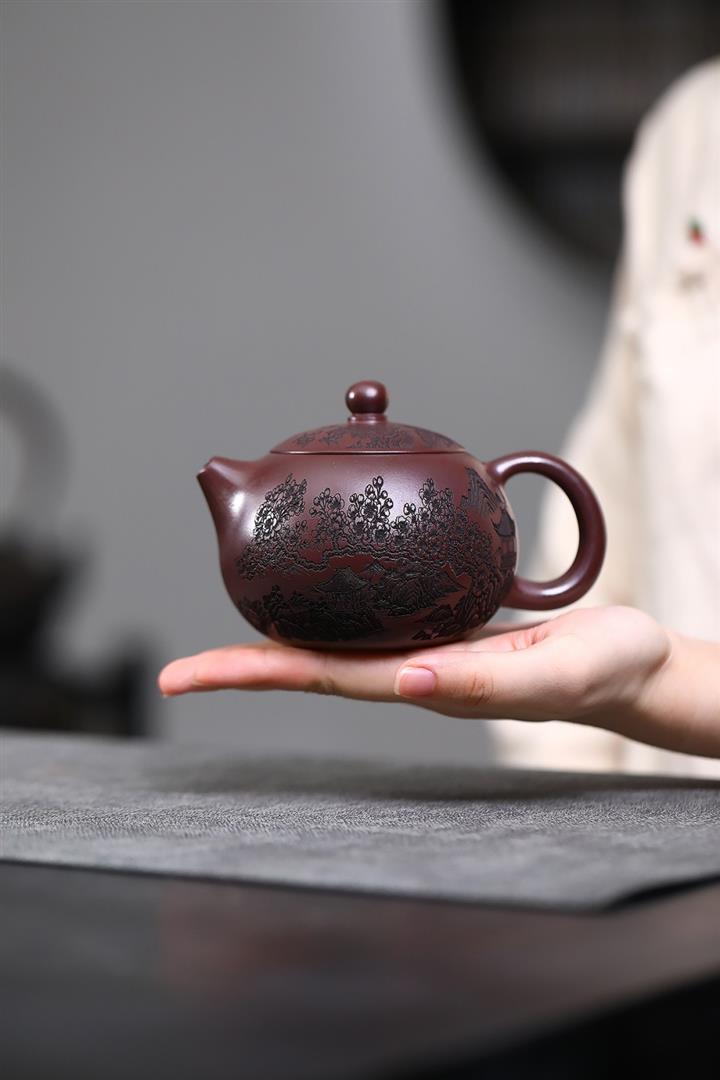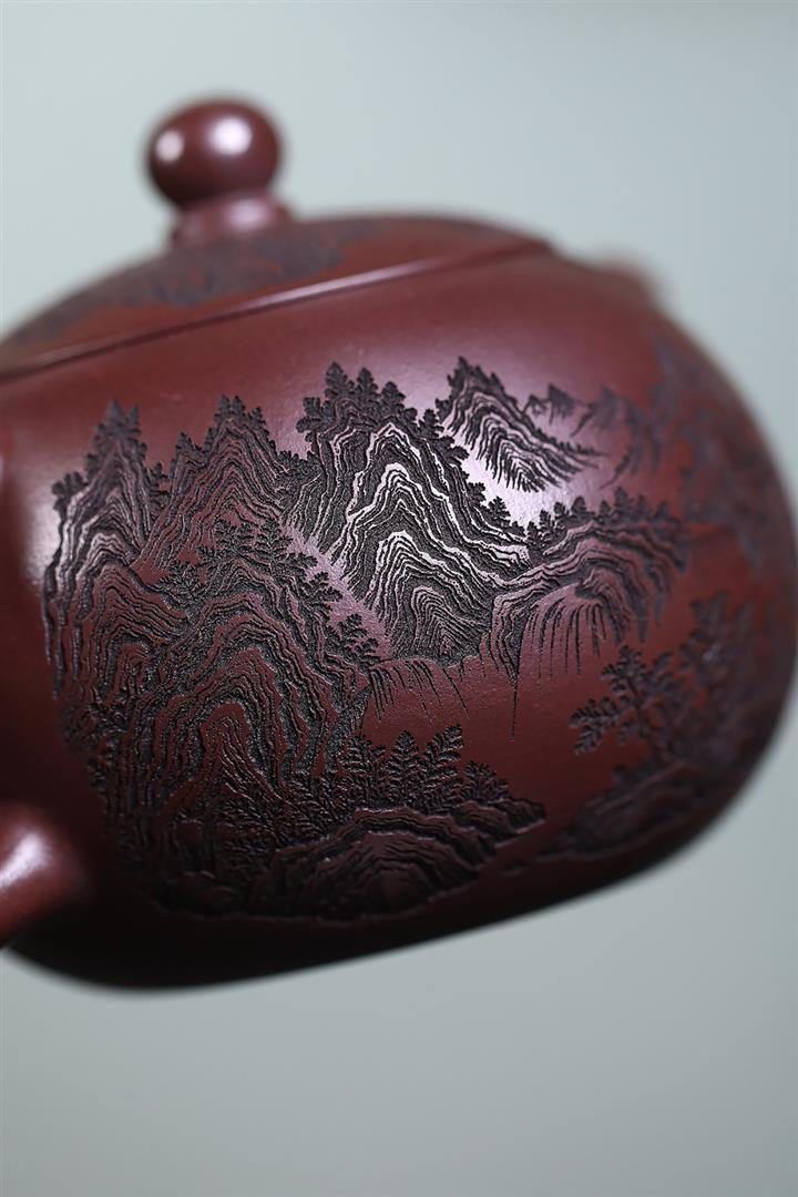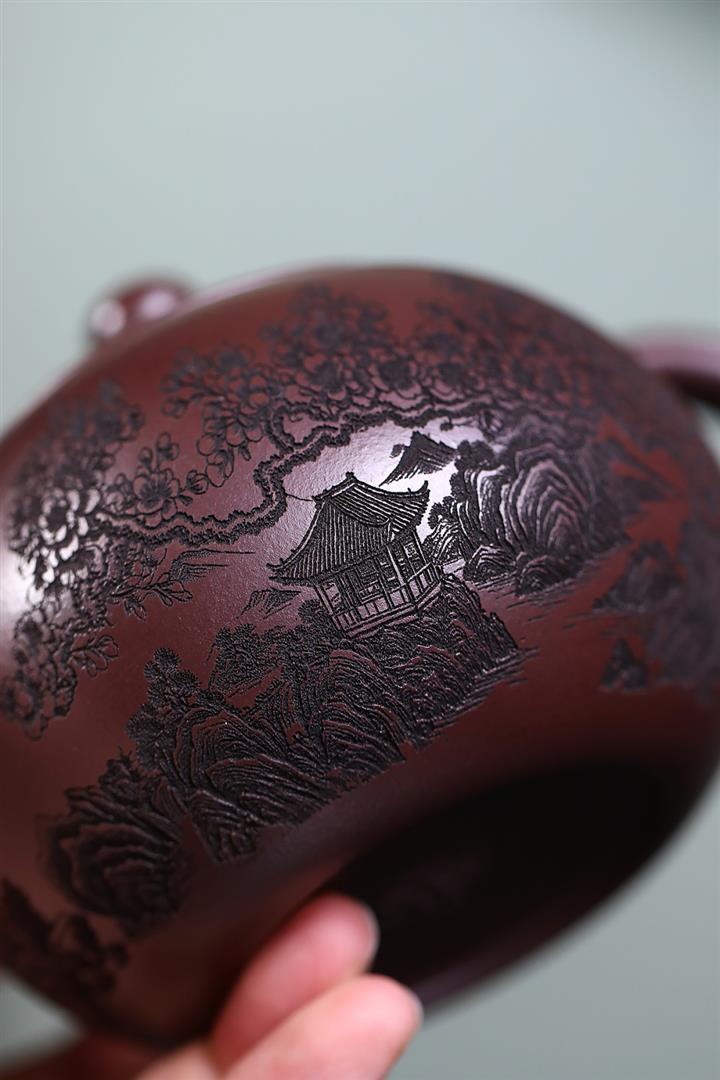320cc原礦石紅泥滿刻桃源西施茶壺POT8404