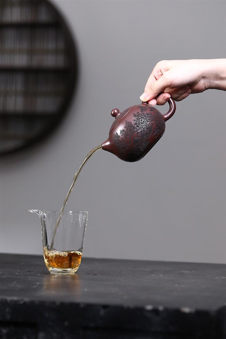 【泥料特點】砂土氣重,似淳實農民,日久使用,漸露鋒芒,養成變化,溫潤莊重。紫砂是壹種雙重氣孔結構的多孔性材質,氣孔微細,密度高。用紫砂壺沏茶,不失原味,且香不渙散,得茶之真香真味。紫砂使用越久,壺身色澤越發光亮照人,氣韻溫雅。紫砂壺長久使用器身會因撫摸擦拭,變得越發溫潤光澤。