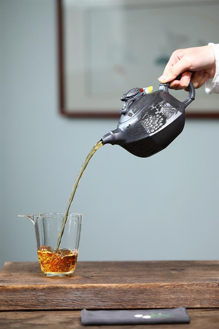 【泥料特點】砂土氣重,似淳實農民,日久使用,漸露鋒芒,養成變化,溫潤莊重。紫砂是壹種雙重氣孔結構的多孔性材質,氣孔微細,密度高。用紫砂壺沏茶,不失原味,且香不渙散,得茶之真香真味。紫砂使用越久,壺身色澤越發光亮照人,氣韻溫雅。紫砂壺長久使用器身會因撫摸擦拭,變得越發溫潤光澤。