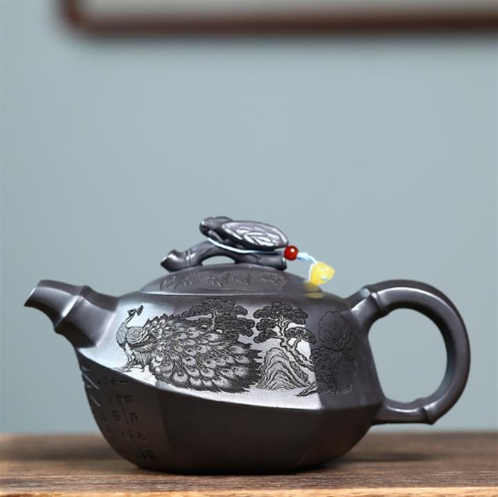 500cc原礦石黃泥松蟬雀韻泡茶壺POT8405