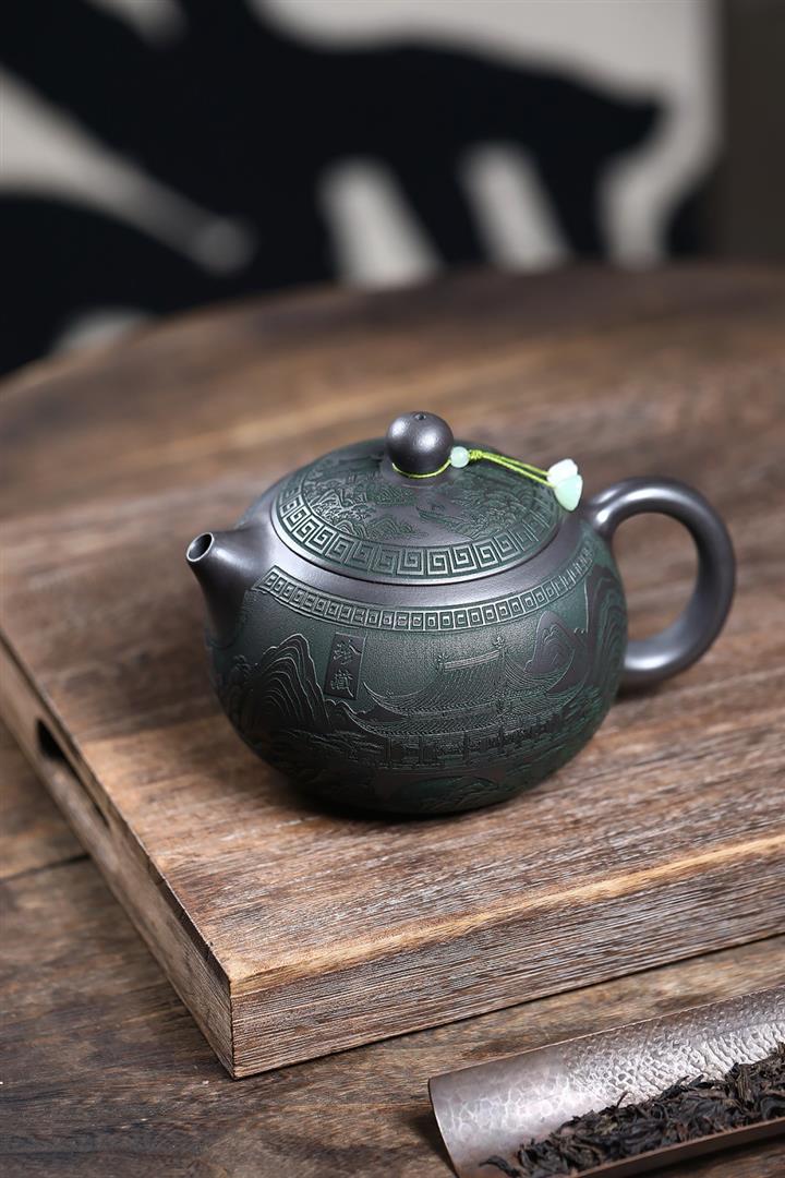 【作品介紹】此款壺形線條流暢,壺把,壺嘴,壺身壹氣呵成栩栩如生,是收藏把玩的好壺,泥料色澤古樸典雅,日久使用,漸露鋒芒,養成變化快,溫潤莊重,用其泡茶,使用的年代久,壺身就溫潤,泡出來的茶湯也就醇郁芳馨。
